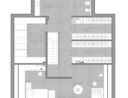 Abbiamo recentemente acquisito questo grande loft su 3 piani, di 270m2 circa. Il progetto in questione riguarda la nostra camera al secondo piano.