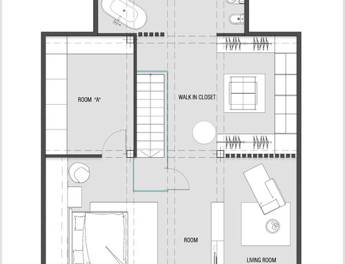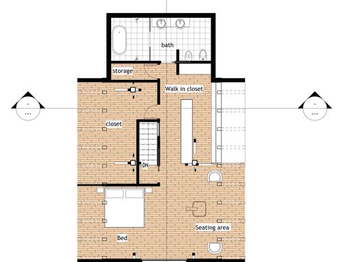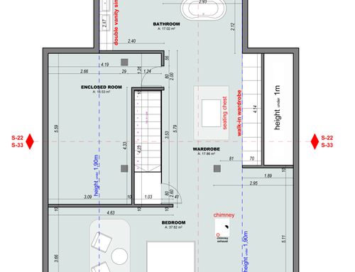 - in the part I have called "A", I was thinking of making an enclosed room for changing wardrobes or to put bulky things in