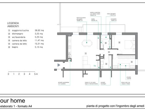 La planimetria allegata se stampata in A4 deve essere considerata in scala 1:100 e non 1:50 come riportato , va stampata in A2.