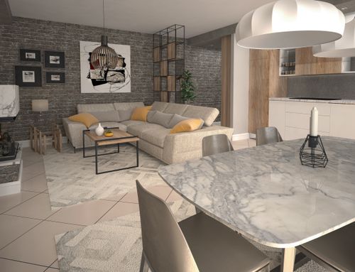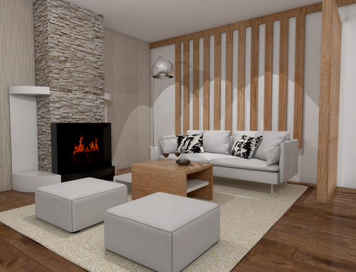 Desidero uno stile sobrio , luminoso , con rimandi a pietra e legno , con uso di resine per la pavimentazione e magari per la doccia. Mi piace pensare che le caratteristiche dei singoli spazi virtuali , tipo cucina , soggiorno , area camino siano individuabili per qualche connotazione nell'uso dei materiali e delle luci.