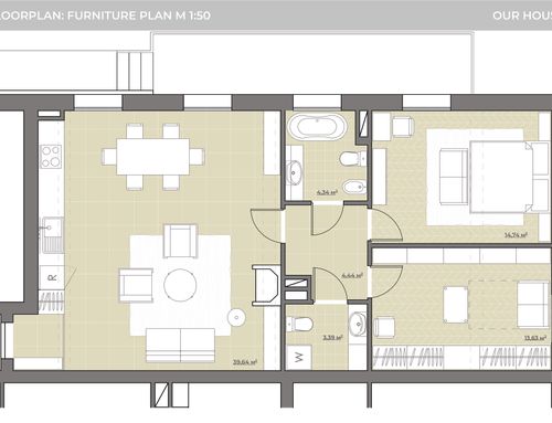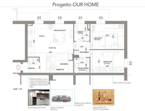 Troverete una impostazione dell'arredamento che è stata introdotta da chi ha realizzato il disegno , ma per lo più và ripensata la disposizione di tutto l'arredamento , considerate che c'è un camino segnato con il numero 5.