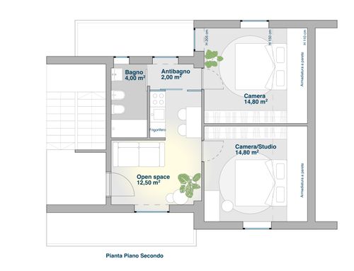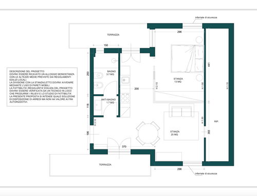 Per il resto occorre ricavare 2 camere di cui almeno una matrimoniale.