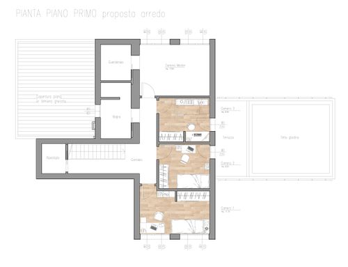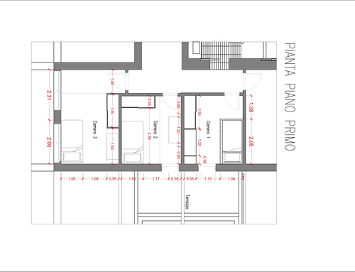 Le camere hanno sono piccole, ce ne sono due da 9 metri quadri e una da 12 metri quadri.