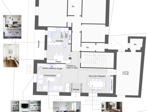 Vorrei fare un lavoro di controsoffittatura per differenziare le varie zone del living, in modo da creare una nuova disposizione dei punti luce. (zona camino, zona ingresso)