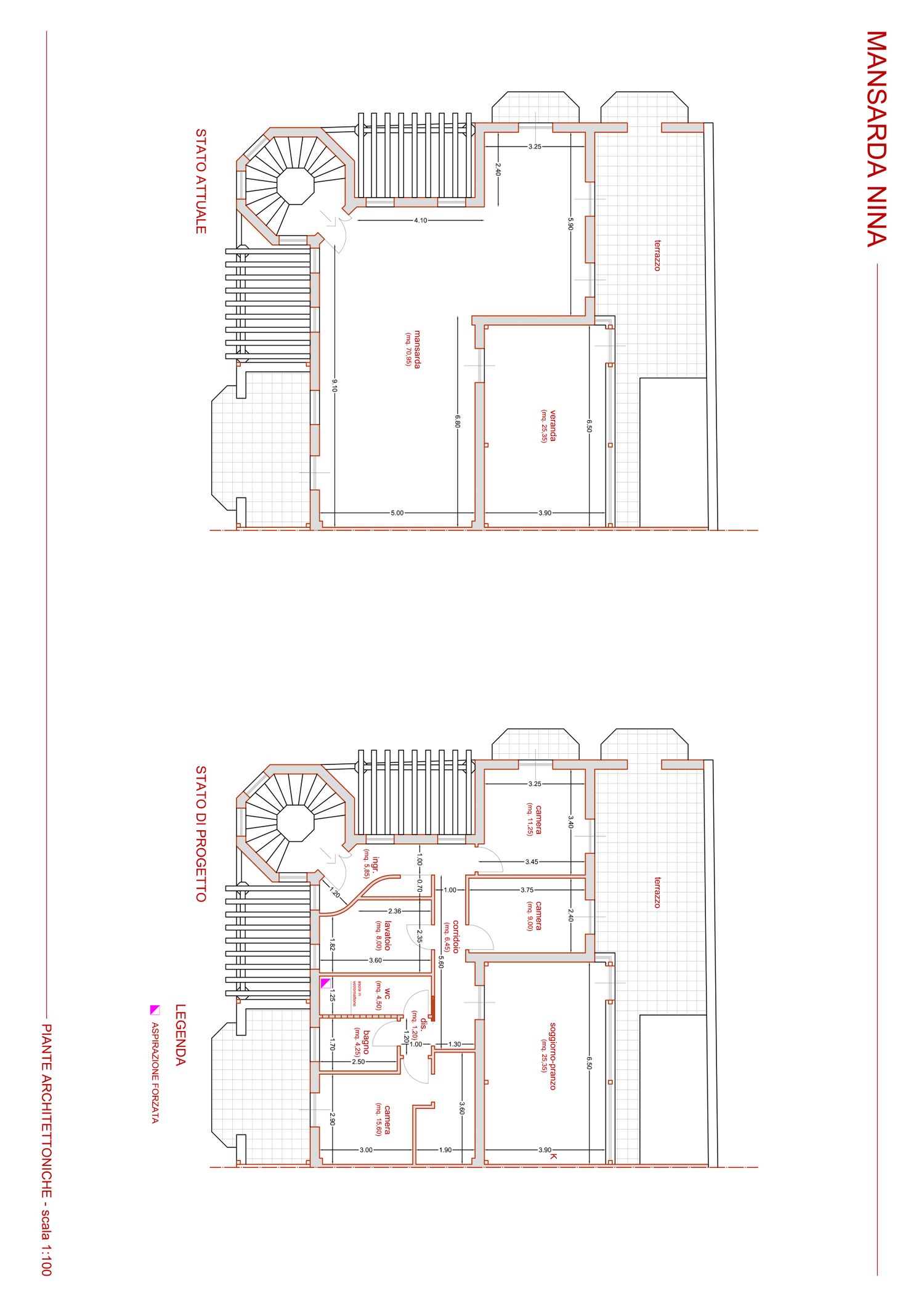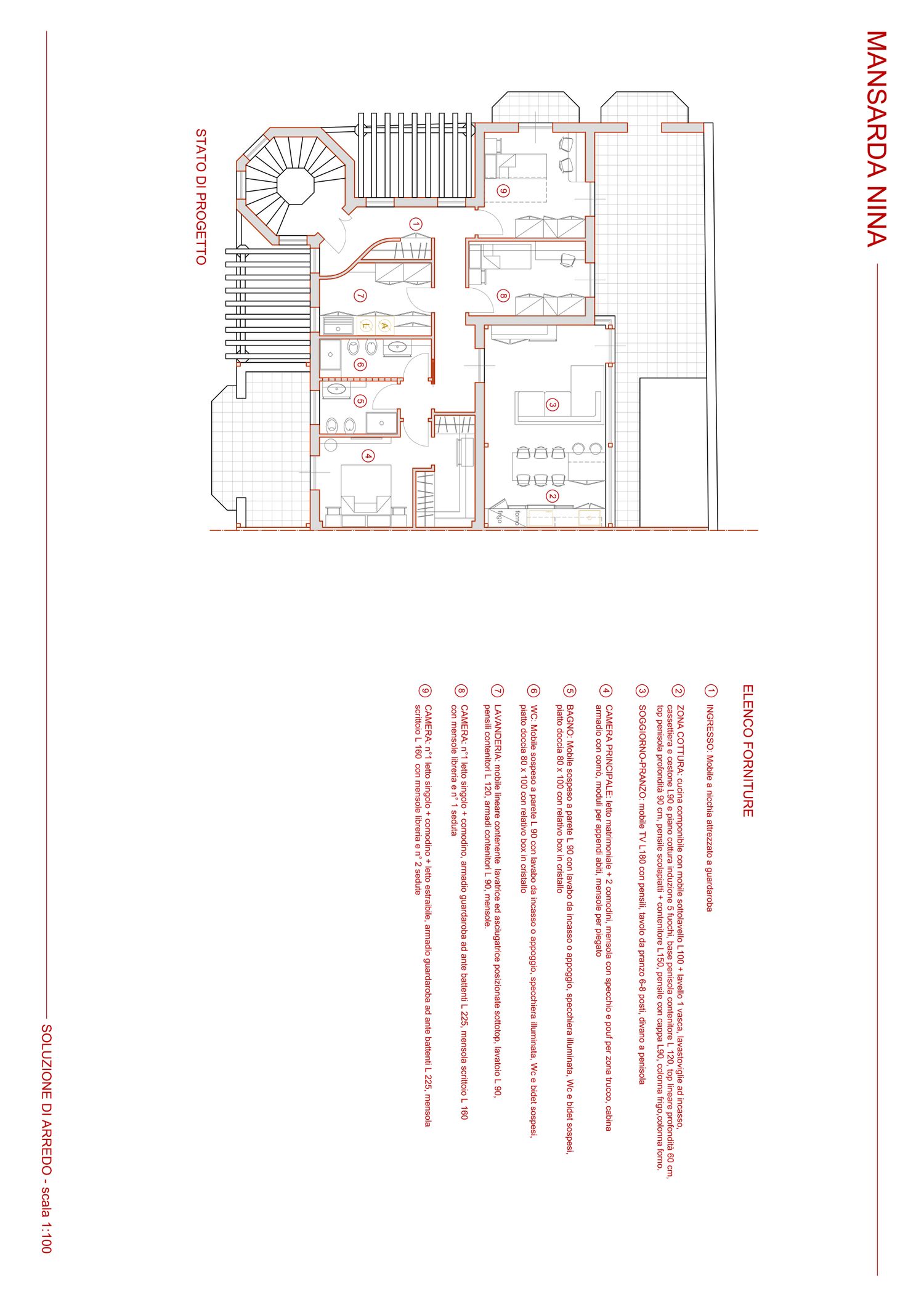 Il progetto risolve la distribuzione richiesta mediante due corridoi distributivi, il primo dall’ingresso alle camere, il secondo che si innesta sul precedente collegando gli ambienti rimanenti: soggiorno pranzo, camera principale ed il blocco servizi locali accessori; si è pensato di raggruppare questi ultimi (bagno, Wc e lavanderia) in una unica zona in modo da semplificare i lavori impiantistici. Gli ambienti creati rispettano le metrature di legge ed i corretti rapporti aeroilluminanti;