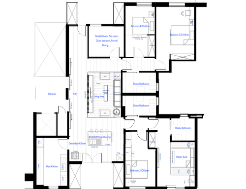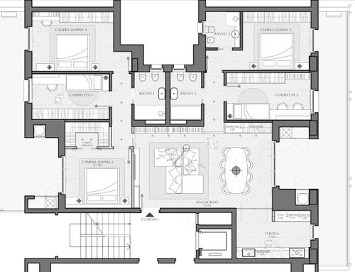 Devo unire due appartamenti adiacenti. L’obiettivo è trasformarli in un’unica abitazione funzionale e spaziosa, adatta a una famiglia numerosa genitori e 4 figli.