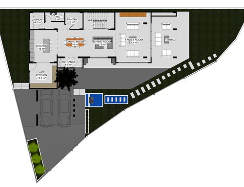 We would like to preserve the current structure of the building but add on additional roofings to increase the amount of usable indoor space by 100 square meters. The design and architectural theme for this project will be a modern, contemporary build with natural elements and materials. Although the house is on a triangular plot, we really like the 38 meter frontage and we hope that the submitted designs can complement the frontage while working around the limitations of the plot.