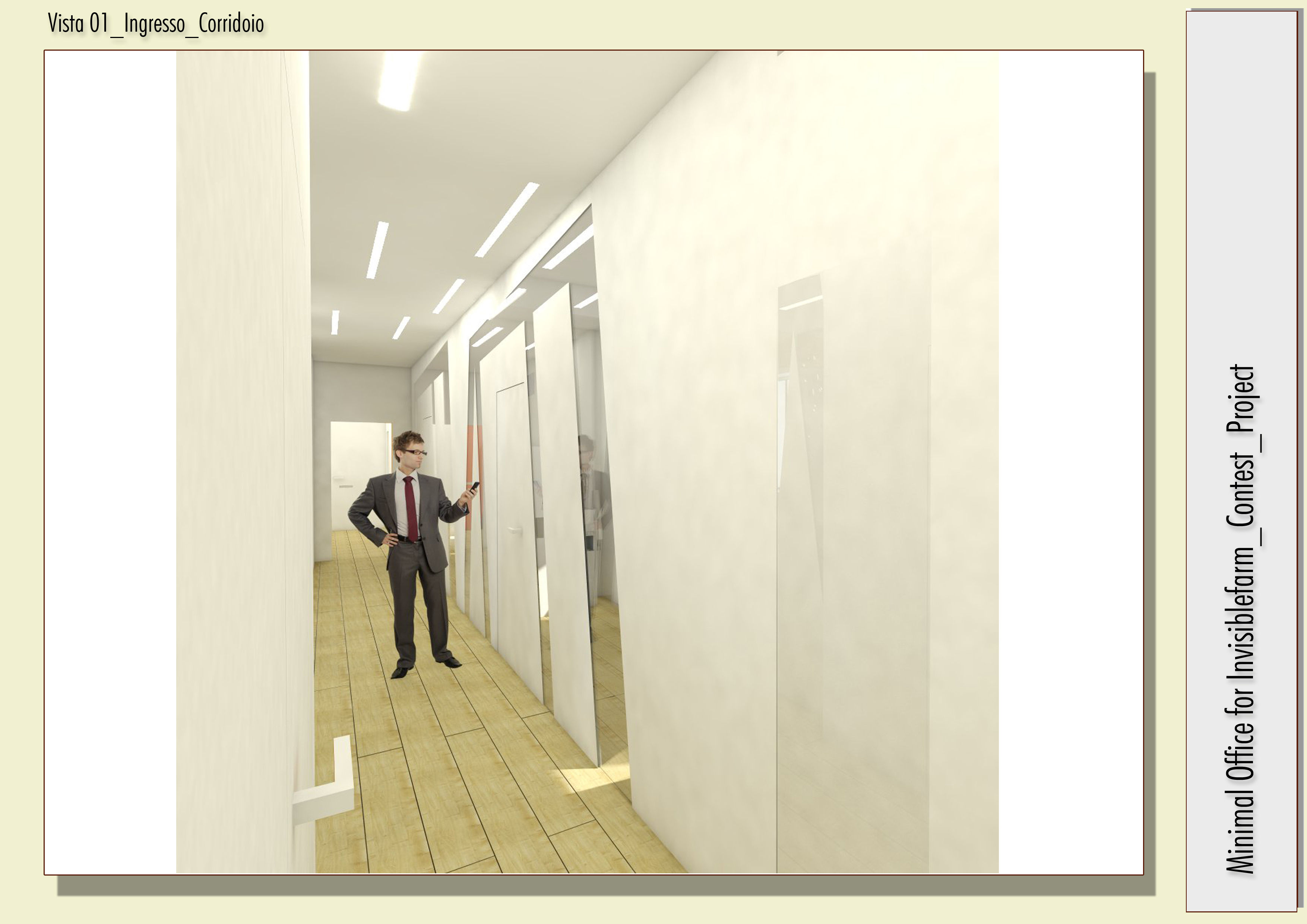 Questo ufficio sarà la nuova sede di Invisiblefarm, una softwarehouse molto innovativa che lavora con tecnologie opensource. I colori sociali sono il bianco e il grigio antracite e il logo rappresenta una fabbrica i cui contorni sono invisibili per lasciare spazio alla sostanza. Il nostro motto è l'innovazione è trasparente ovvero facciamo il possibile perchè il nostro cliente continui a lavorare e non si accorga del nostro intervento tecnico fino alla sua completa risoluzione. Siamo orientati all'innovazione e impegnati nella ricerca e nello sviluppo.
