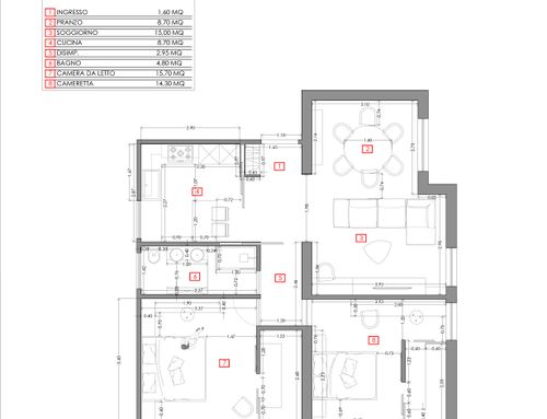 Hi everyone, I have a 75sqm apartment on a mezzanine floor of a small building: I would like to redistribute the spaces of the living area by creating a spacious and bright environment where, if possible, to obtain a study corner. In the sleeping area, create a walk-in closet or a second bathroom instead of the closet and reorganize the bathroom with a larger shower.