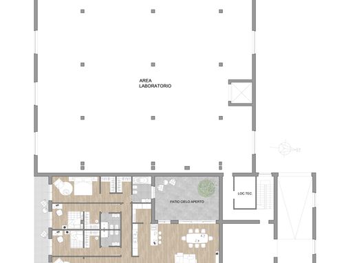 El garaje se ubicará en la esquina noreste del edificio y estará conectado directamente al laboratorio para garantizar la máxima funcionalidad de las operaciones de producción.