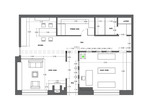 There’s a second entrance from the condominium: this could be used, but it must feel integrated into the design so that the kitchen blends naturally with the Turkish bath and the living area.