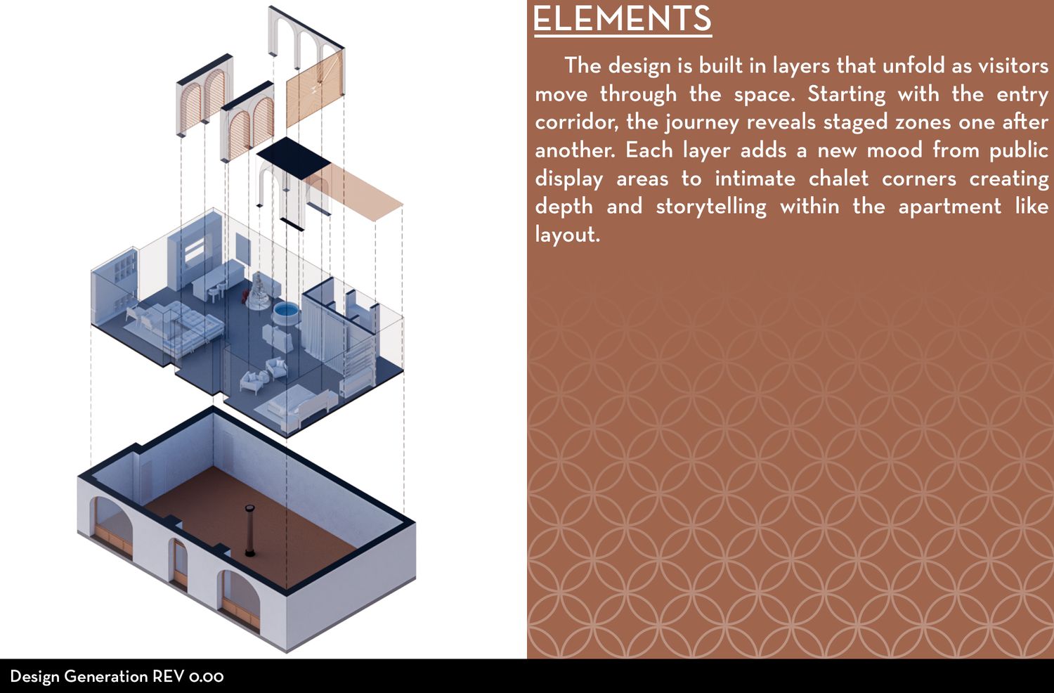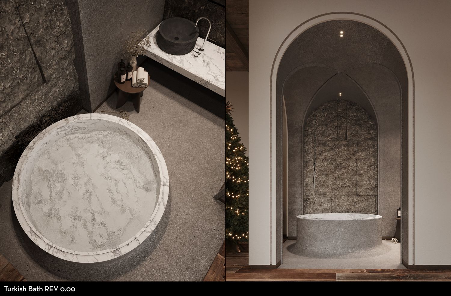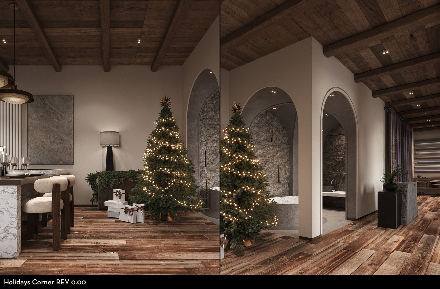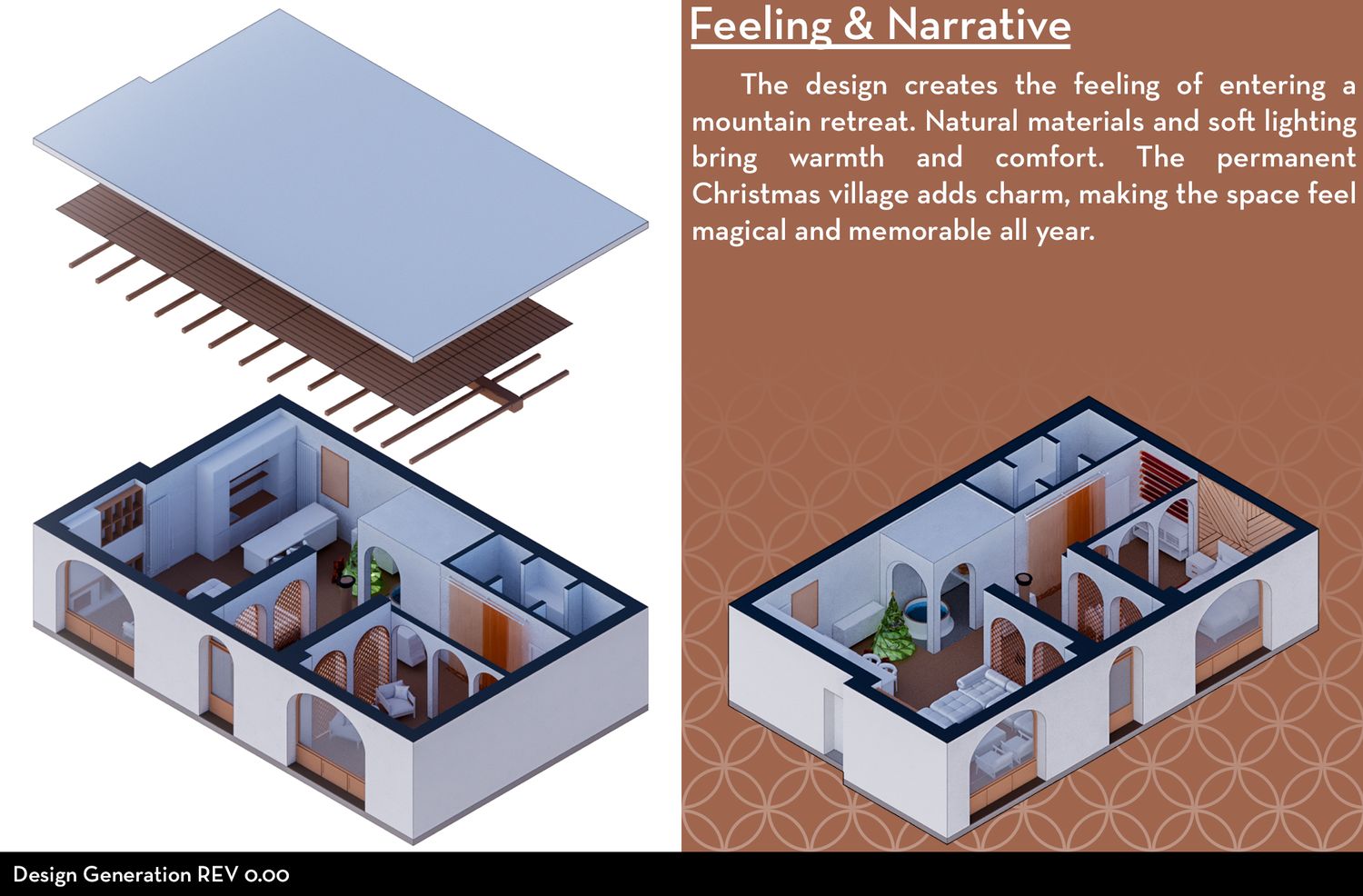 This project reimagines the furniture showroom as a journey through a mountain chalet. From the first step, natural light and crafted details set a welcoming tone, guiding visitors through spaces that feel both authentic and inspiring. Each zone unfolds like a story: a warm living area by the fireplace, a festive kitchen with holiday charm, a striking Turkish bath, rich fabrics, and bold bedroom staging. The path ends in a serene bathroom retreat, echoing the spirit of an alpine cabin. More than a showroom, it is an experience, inviting guests to feel the chalet life, not just see it.