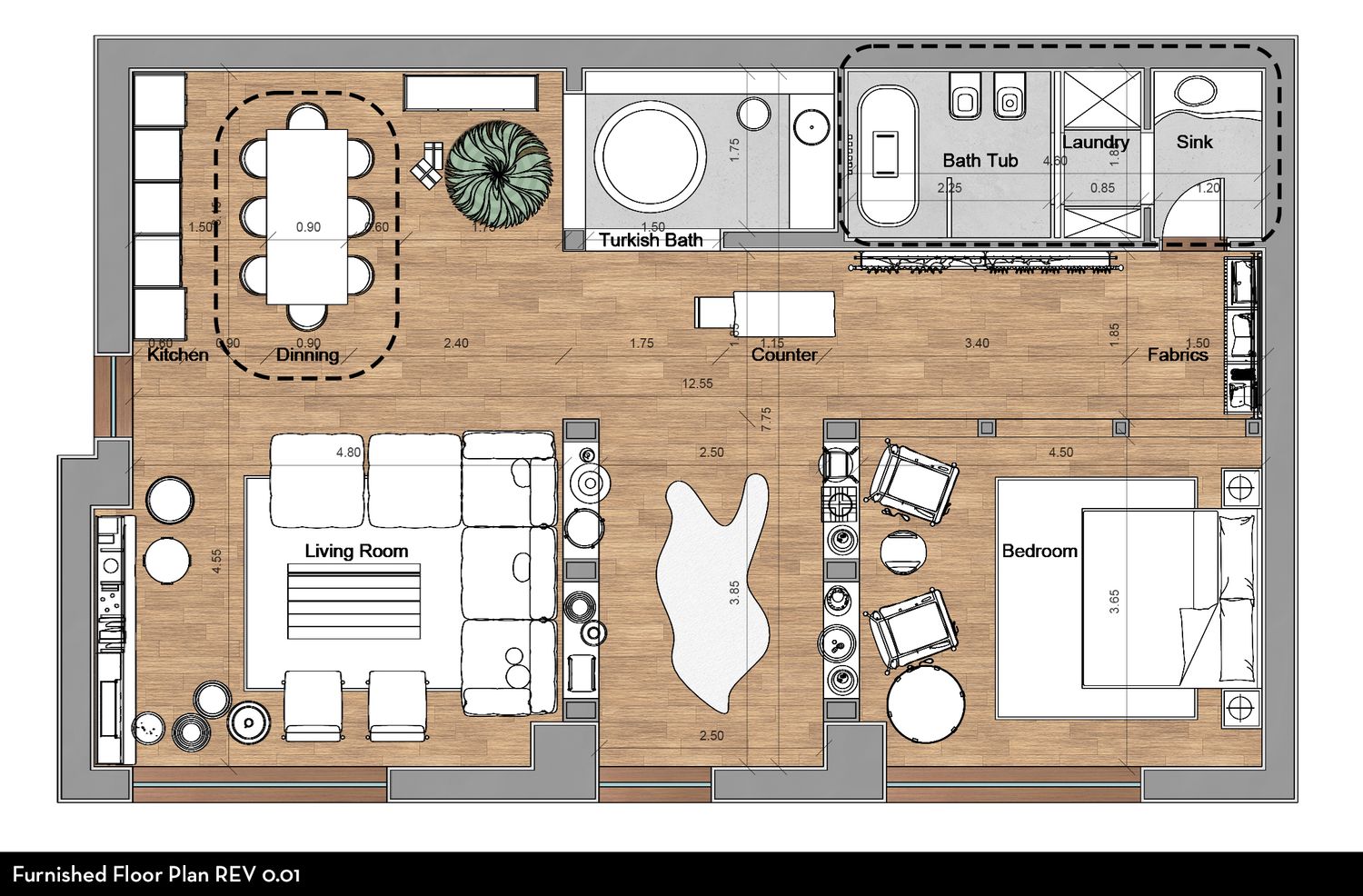 Note: There are revisions 0.00 and 0.01 as per the Edits on the bathtub and the Possibility of adding a dining area.