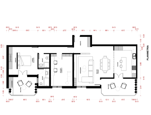 Hi everybody! I’ve got a100 metres square apartment in a condo in Cagliari. The apartment has a southern exposure that provides lots of natural light, but, unfortunately, the windows are all on one side too. It’s a three-room apartment plus kitchen and a bathroom situated on the first floor with two large balconies. I’d like an open space living area where to place a sofa, table and chairs and some furniture for the TV. I don’t like closed kitchens, but I fear that an open kitchen is not easy to manage, I’d rather go for a semi-open kitchen. The second bedroom is meant to be used for inviting guests for very short periods of time but mainly used to work with my computer. There is one bathroom in the house, and I need to transform it into two small bathrooms, one of them with direct access to the master bedroom, which is the one with the balcony, while the other bathroom would be for the guests. In order to save space, the guest’s bathroom will have no bidet. I would like to have a walk-in closet in the master’s bedroom. I’d like to have a big wooden closet on the balcony next to the master’s room and I’d like to arrange a laundry on the balcony just out of the bathroom’s door and keep it hidden as much as possible. I need closets or a second wardrobe, and bookcases in the hall, the guest room and the living room. Wood flooring is my favourite, but I’m not keen on paying too much money as it is very expensive. My favourite style is something between modern, contemporary and minimalist. I still have some furniture that I like very much and I’d like to use in my new flat: a red sofa, two big speakers, a white table with aluminium legs, grey imitation leather chairs, a white chest of drawers, two Kartell bedside tables, plastic chandeliers and lamps of different colours. I took a picture of them that you can find in the "reference pictures" section. Thank you for reading and helping me with this project!