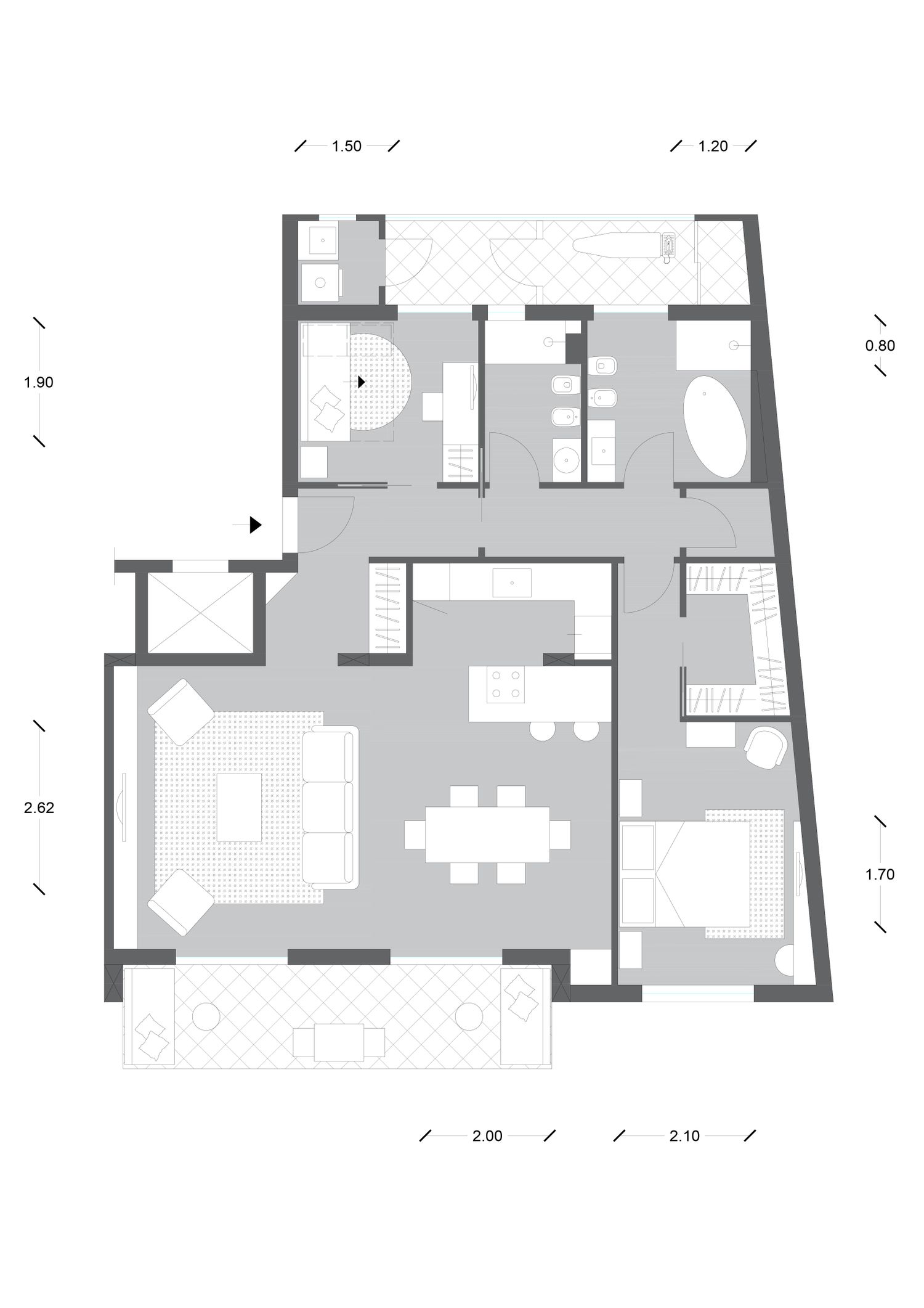 Anche se non richiesto ho voluto inserire un secondo bagno completo per ospiti a dormire o a cena.