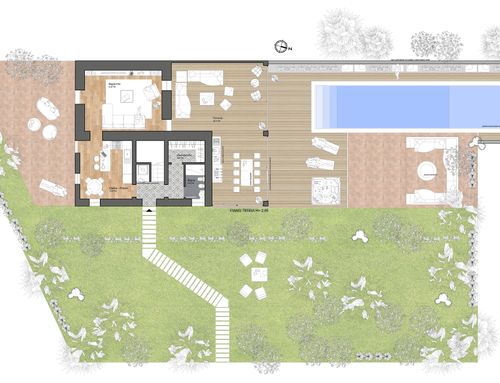 Hola, tengo una casa de campo de unos 100 metros cuadrados para ser completamente restaurada. Deseo recibir consejos sobre cómo redistribuir interiores y exteriores. La propiedad se distribuye en tres niveles: planta baja, primer piso y ático. La solicitud es tener una casa muy funcional con una gran cocina equipada, al menos 2 baños, 1 estudio pequeño y 3 habitaciones si es posible. En la planta baja hay una sala de estar, 1 área para dormir y en el ático una zona con dormitorio y estudio y/o vestidor. Si fuera posible, también me gustarÃa aumentar los pies cuadrados ya que hay mucho terreno disponible en el lateral donde también me gustarÃa tener una piscina. En este caso, cree un entorno donde pueda recibir amigos.