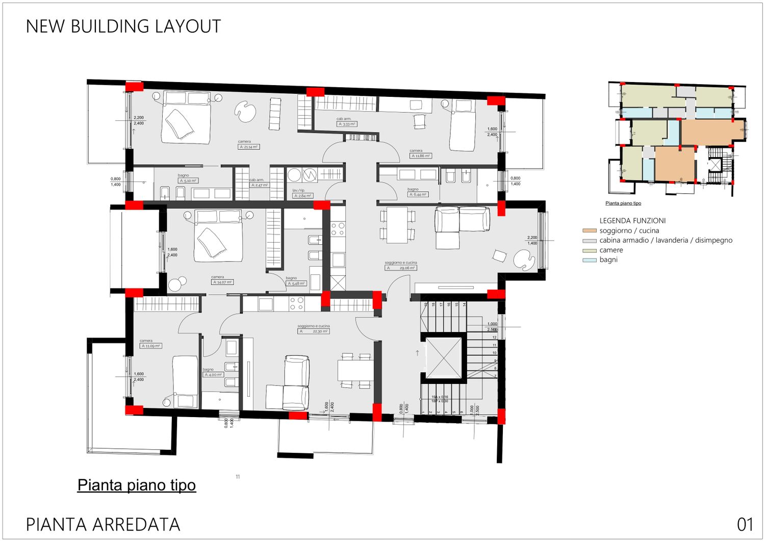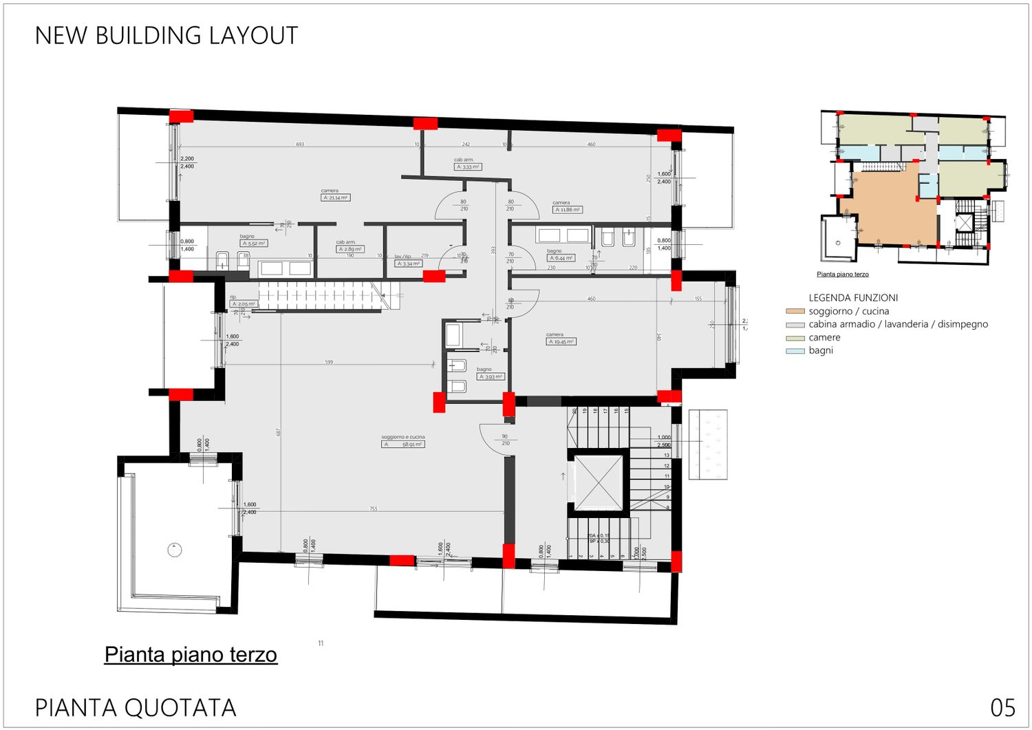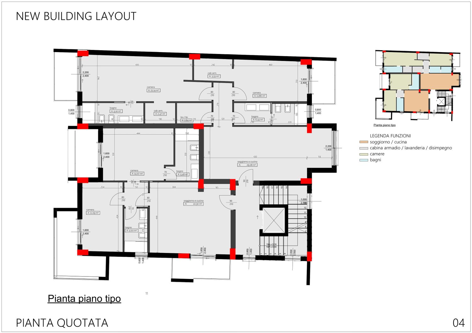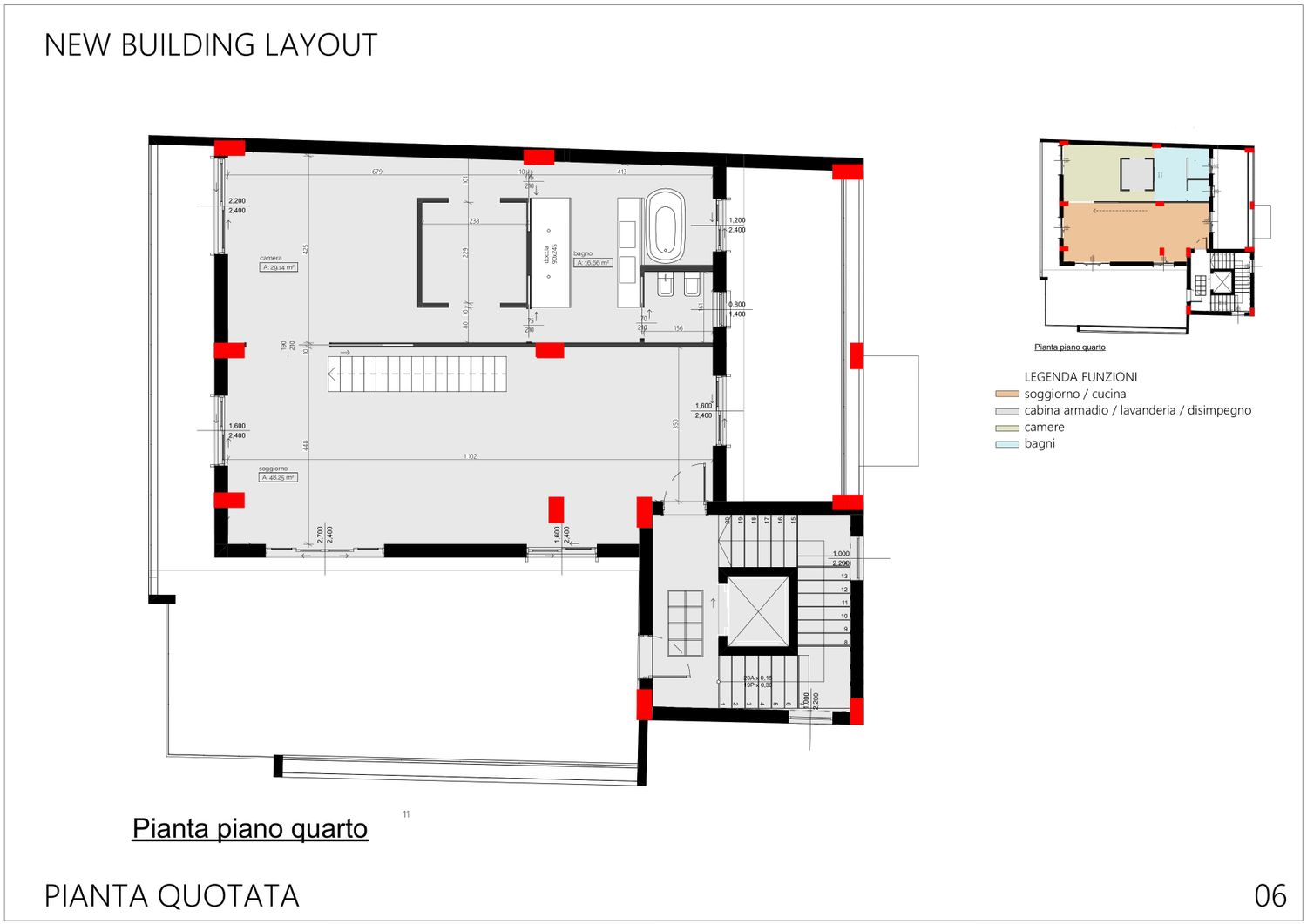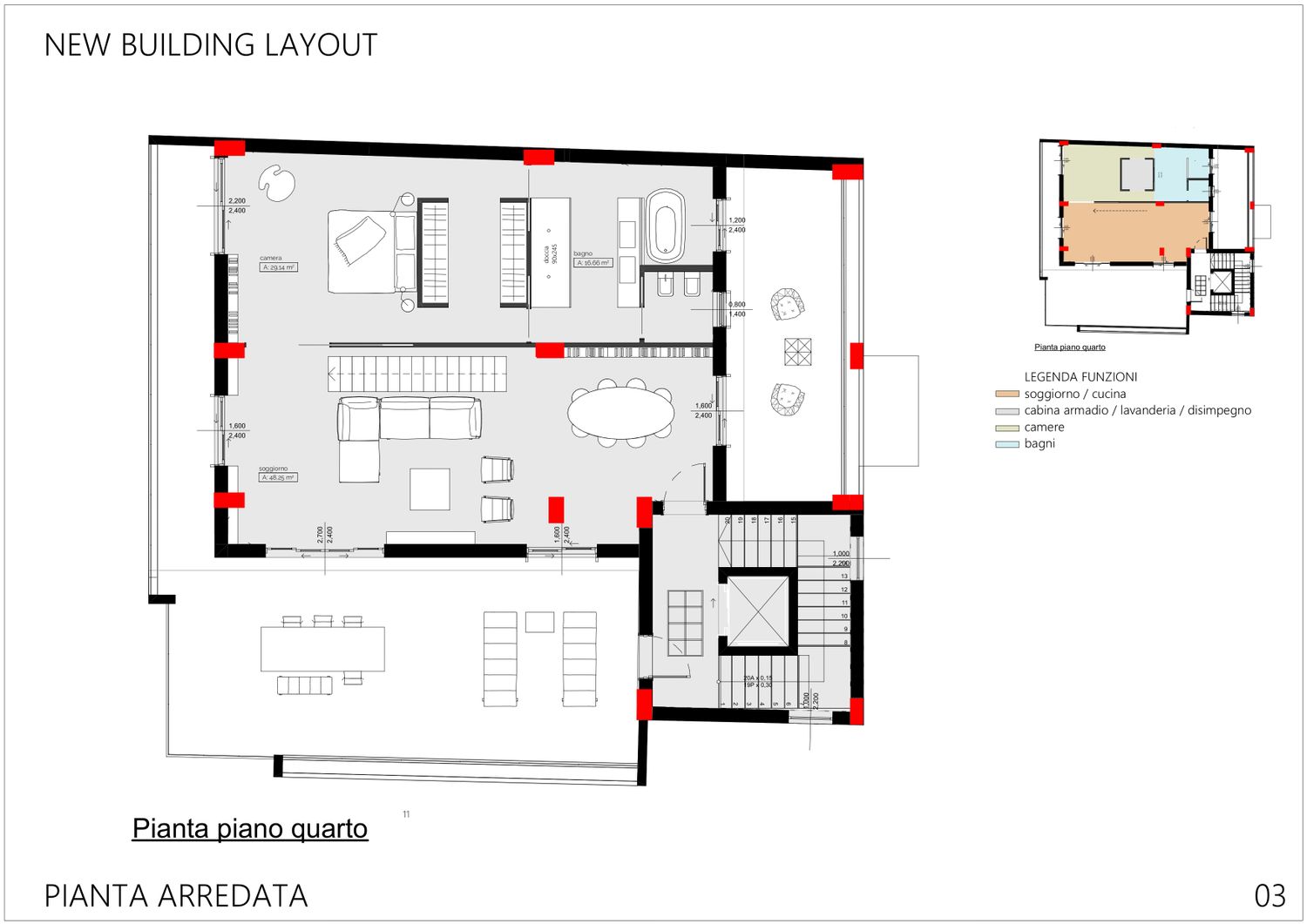 - Mantenimento della posizione dei bagni in prossimità delle finestre per garantire luce e ventilazione naturale.