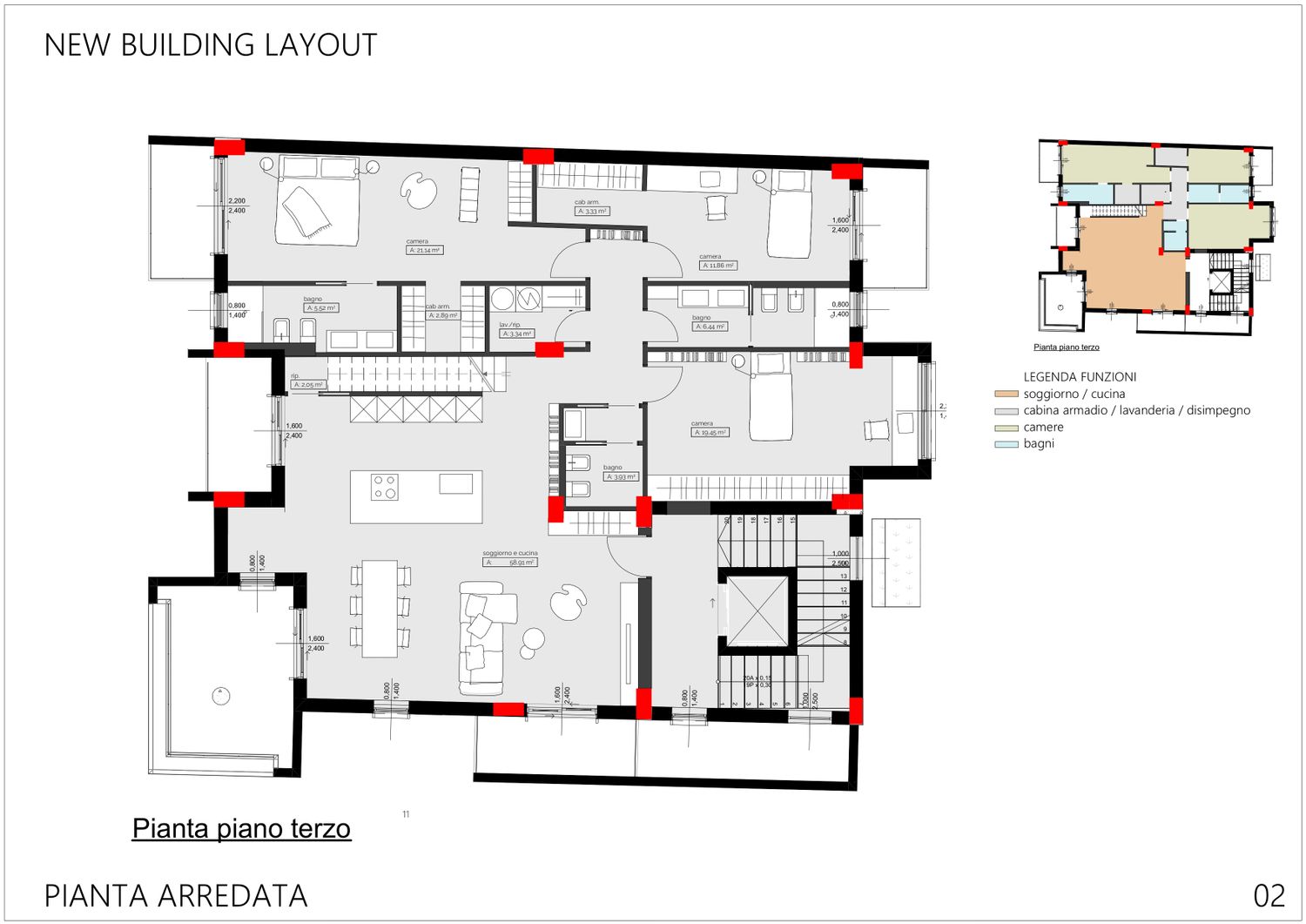 L’intervento più significativo è la riprogettazione della scala interna: ora lineare, razionale e più economica da realizzare, anche in termini di esecuzione dei solai.