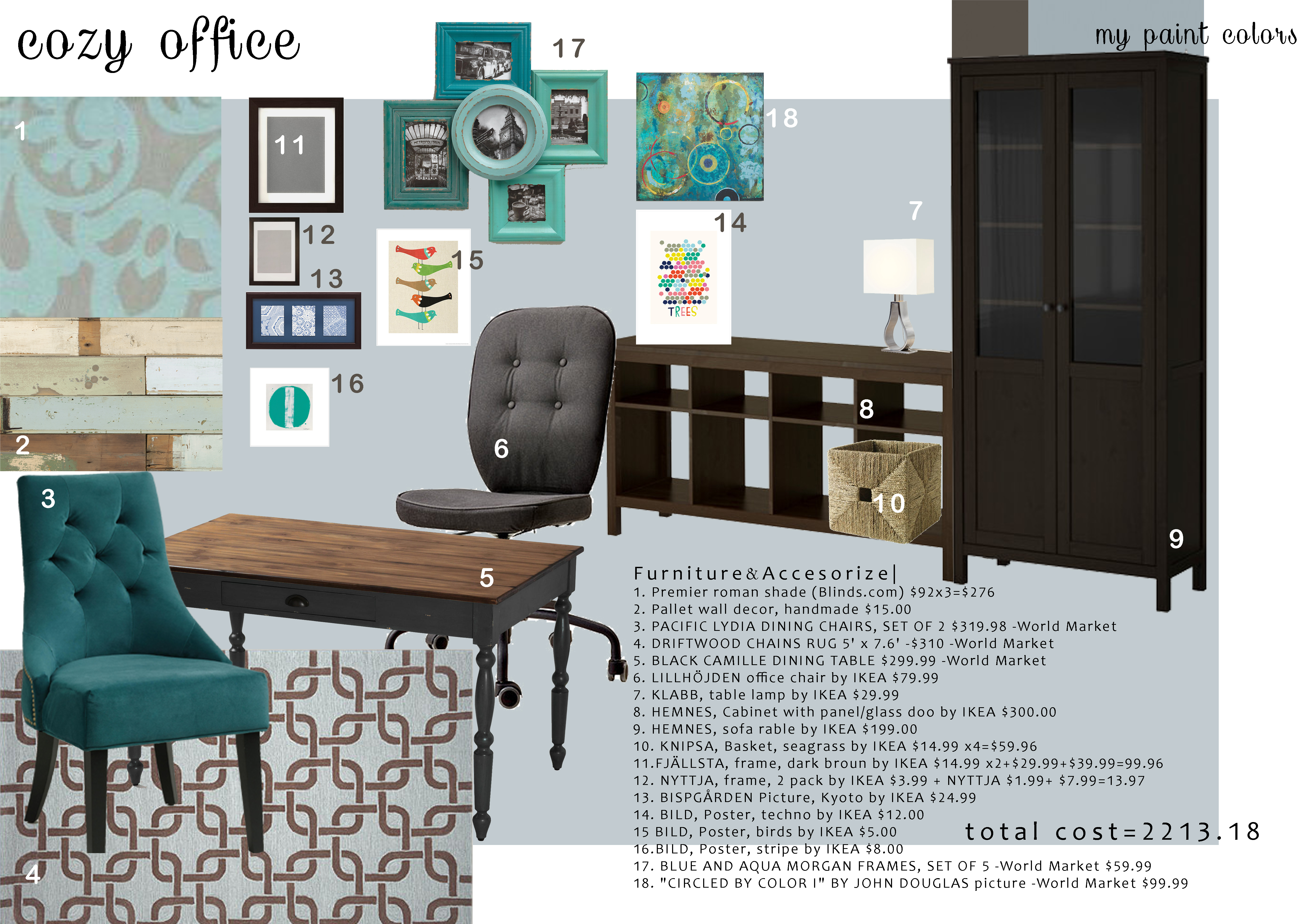 I am looking for something cozy, yet contemporary to see my clients in. I will need a normal desk to work on and my clients will sit behind it. I'd like to see some suggestions for window coverings, carpet, wall art, and wall color if possible. Any ideas appreciated! Don't want it too modern where it is "cold" looking, something that my clients would be happy to come visit me in.