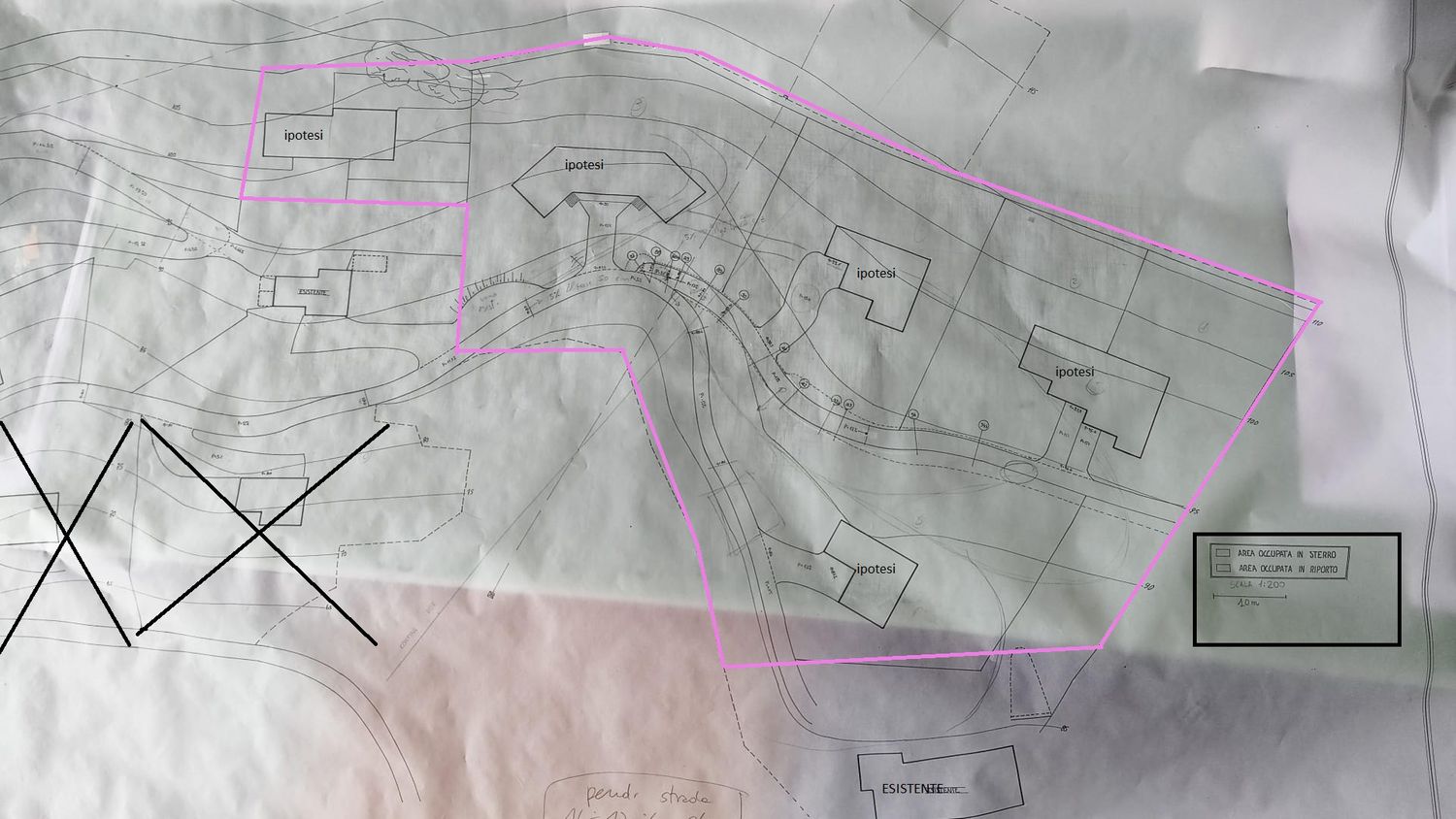 ESSENDO i Lotti sopra la "strada centrale" in pendenza, direi di fare anche soluzione casa a sbalzo tipo su palafitte, per evitare scavi e muri di sostegno (come ipotesi n°2)