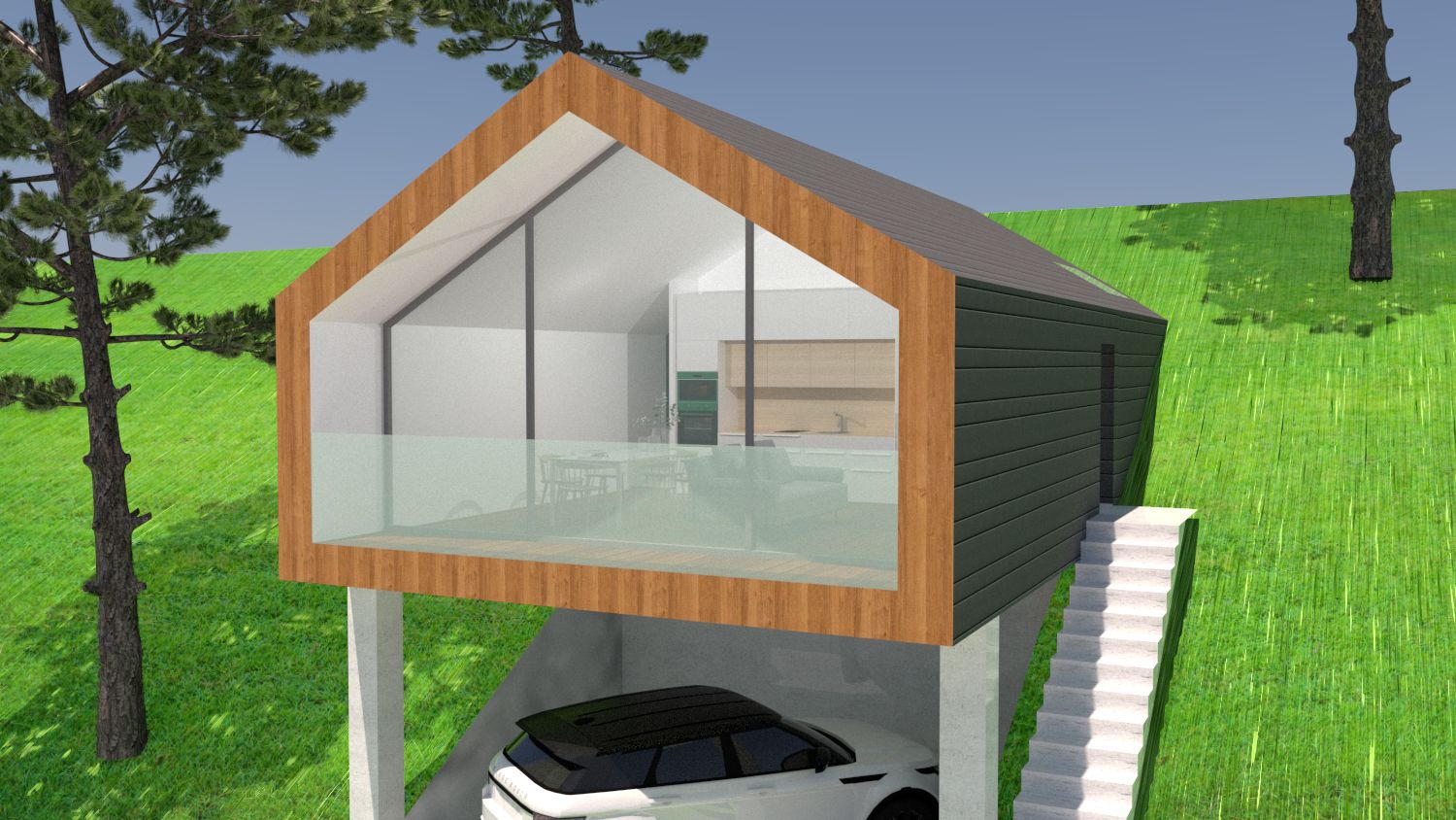 Nella progettazione si è cercato di minimizzare gli sbancamenti nel rispetto dell’ambiente montano prevendendo villette più piccole e poste su una struttura a palafitta nella parte più pendente dell’area.