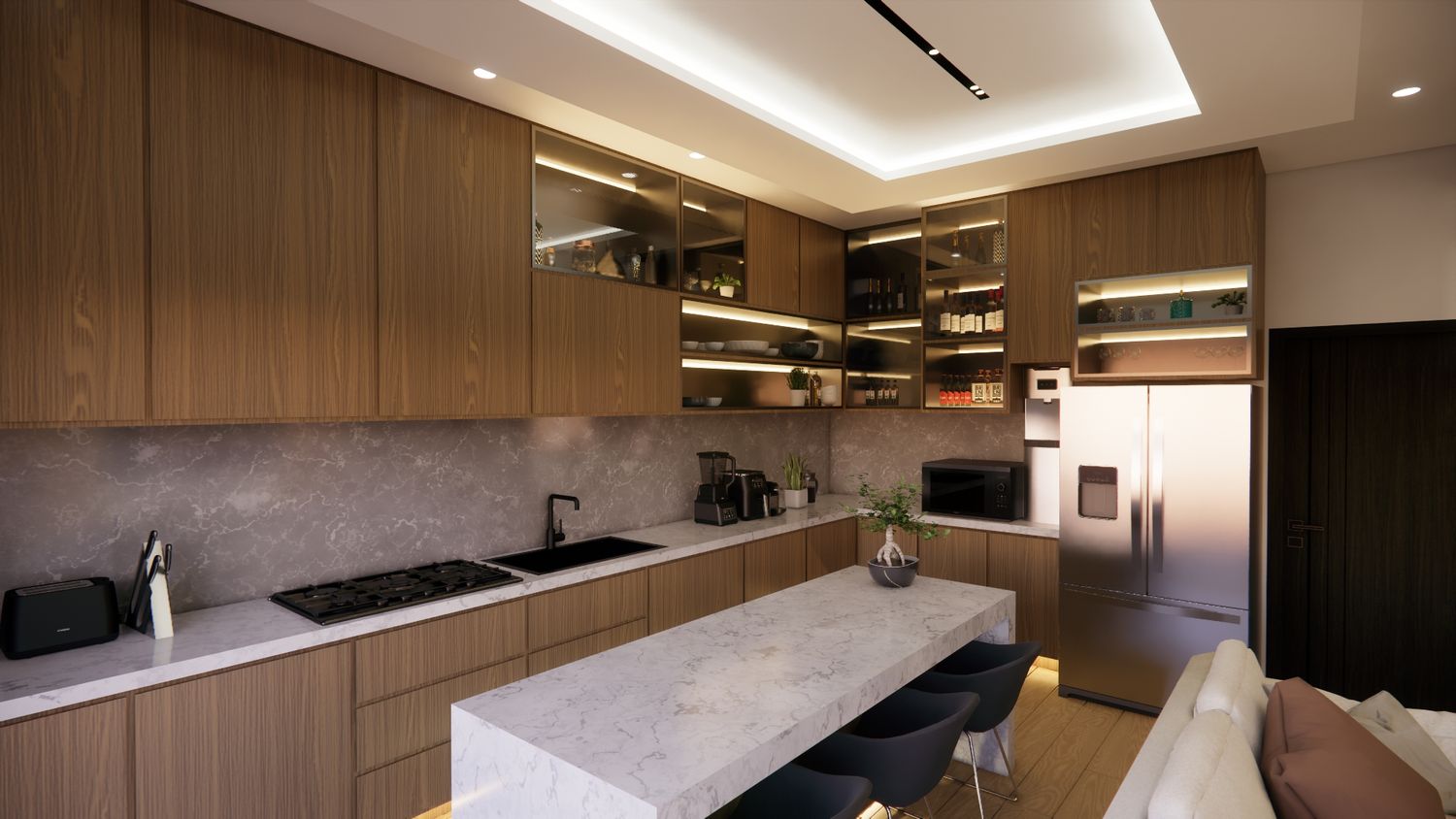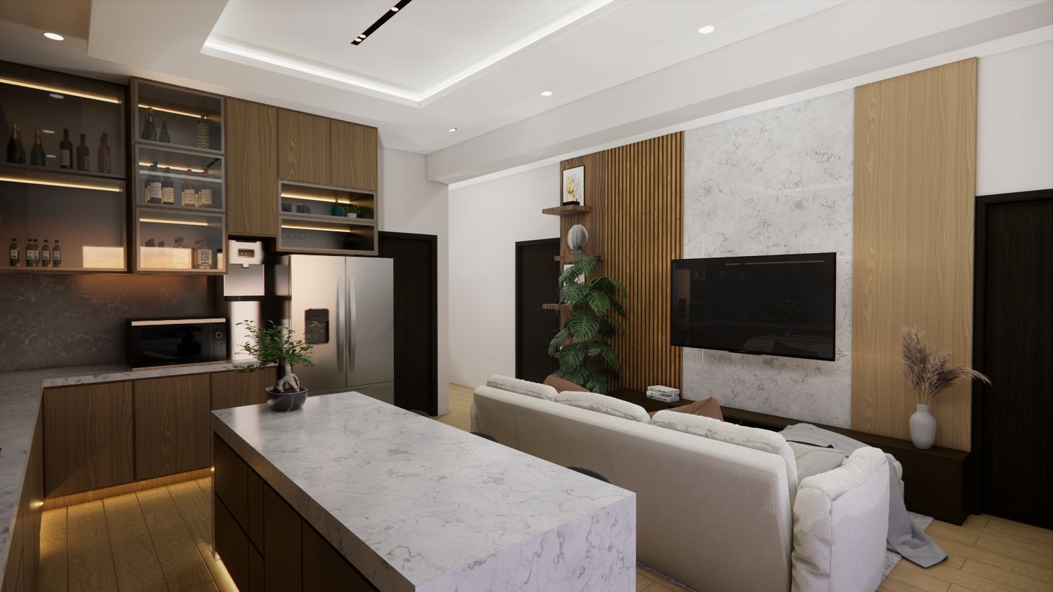 The existing layout has been largely preserved and optimized, with only selective modifications applied to certain areas. The overall design concept emphasizes a warm, refined, and comfortable interior environment.