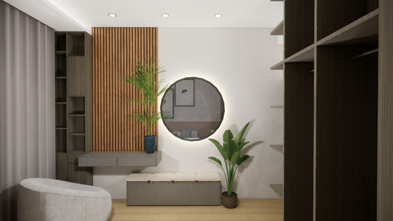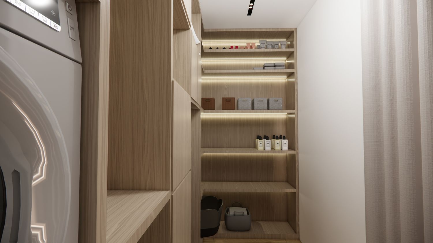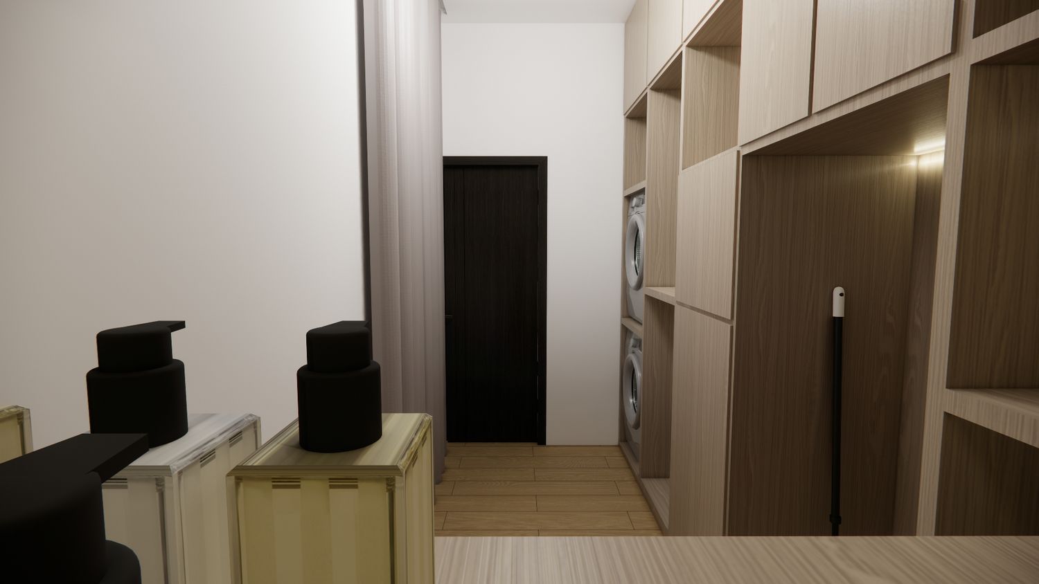 The apartment has been designed in accordance with the client’s stated spatial requirements. The design approach prioritizes minimal structural wall alterations, with the addition limited to the master bedroom area and the expansion of storage spaces.
