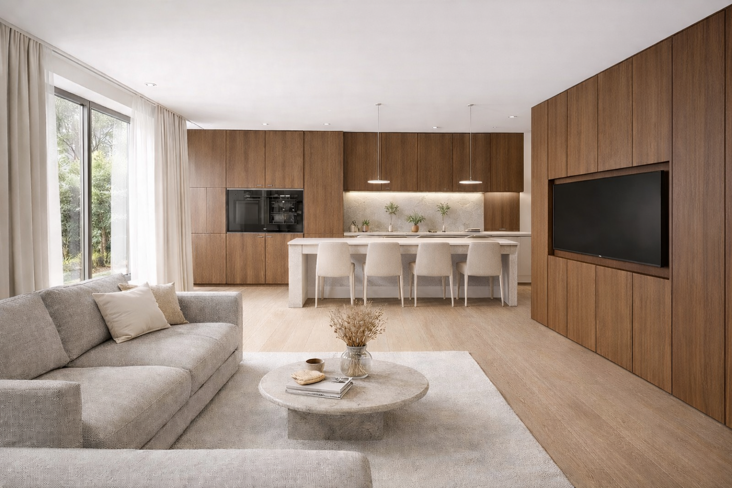 Il progetto ridisegna gli spazi interni mantenendo come fulcro della casa la grande zona giorno, pensata come ambiente centrale di condivisione, luminoso e accogliente, in grado di adattarsi ai diversi momenti della giornata.