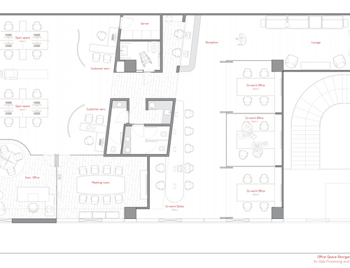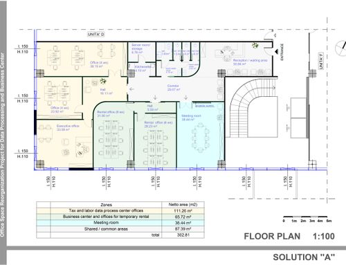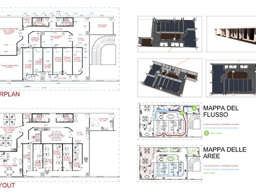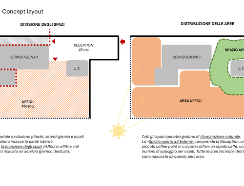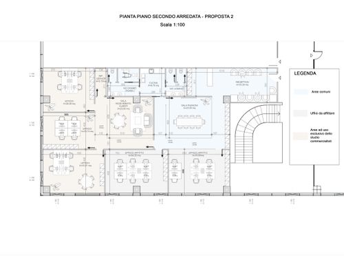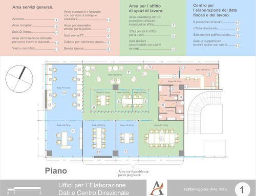 The goal is to define an optimal layout for spaces intended for professional use and, partially, for third-party rentals (business center), including potential coworking areas.