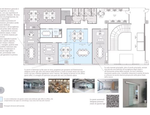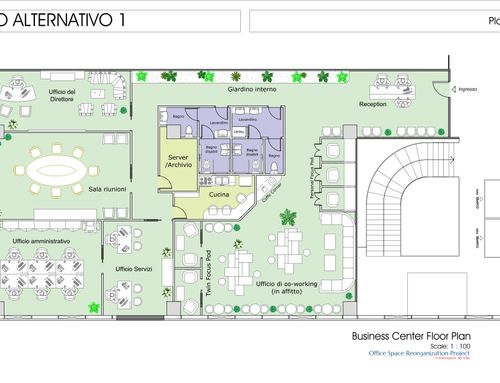 L’obiettivo è definire una distribuzione ottimale degli ambienti destinati all’uso professionale e, parzialmente, all’affitto a terzi (business center), non escluso il coworking