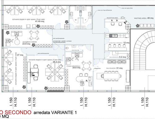 - una reception in prossimità dell’ingresso (30 mq circa).