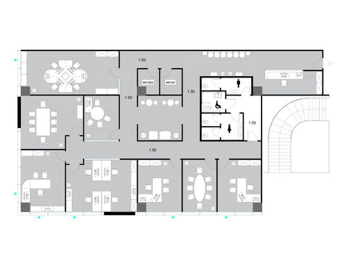 El objetivo es definir una distribución óptima de los espacios destinados al uso profesional y, en parte, al alquiler a terceros (business center), sin excluir la posibilidad de coworking.