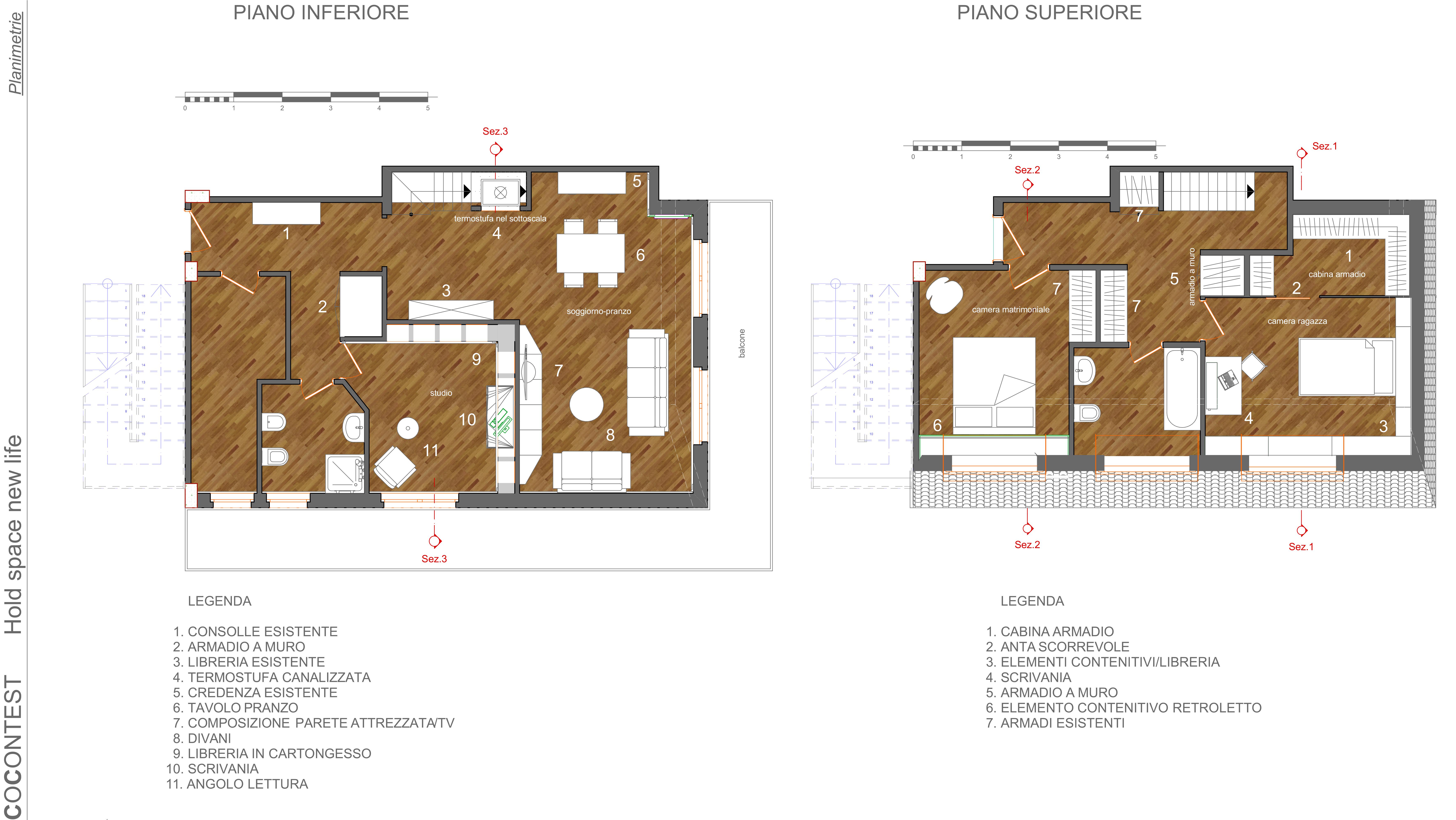 Viviamo in tre in questo appartamento acquistato dieci anni fa e ora vorremmo renderlo più accogliente e funzionale. È distribuito su due piani (ultimo e penultimo: d’ora innanzi sopra, sotto), con scala interna comunicante, è caldo e luminoso.
