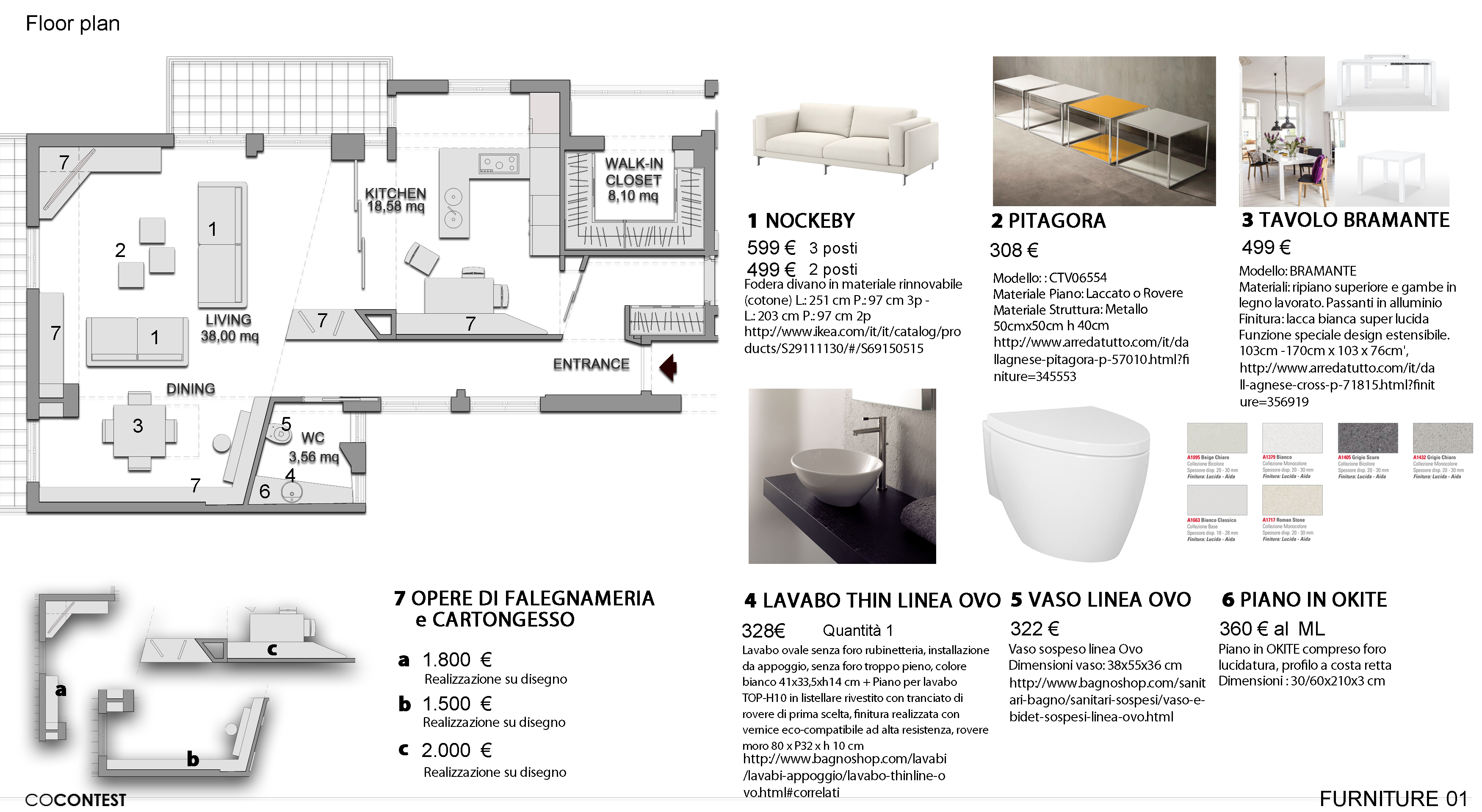 There is little furniture we want to keep, so please consider to realize custom furniture by plasterboard/wood, especially to create storage spaces.