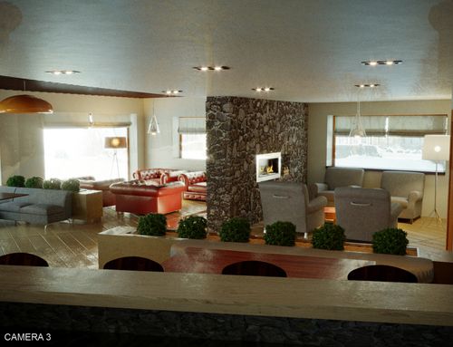 We need a new Bar-Restaurant-Lounge area in our hotel. We would like this area to be the "Living Room" of our hotel. In the afternoons, our hotel guests (70-100 person) usually have a snack in our Hotel bar, so we need a buffet area; it would be great if it is designed to seem like a kitchen.