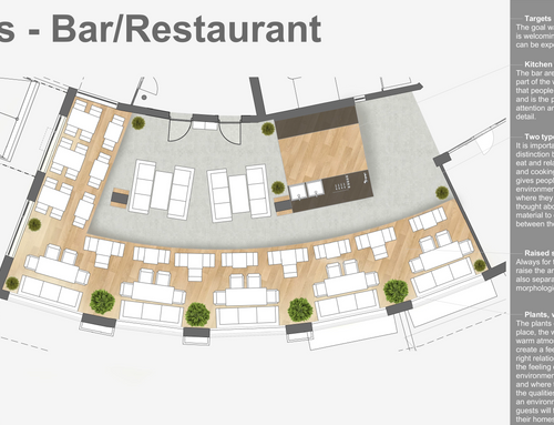 Ci serve una nuova area Bar-Ristorante-Lounge area nel nostro Hotel. Vorremmo che questa nuova area fosse "il salotto" dell'hotel. Generalmente nel pomeriggio i nostri ospiti (circa 70-100 persone) si recano nel bar dell'hotel per uno snack, per questo ci servirà un'area buffet. Sarebbe un plus per noi se quest'area fosse progettata in modo da assomigliare a una cucina.