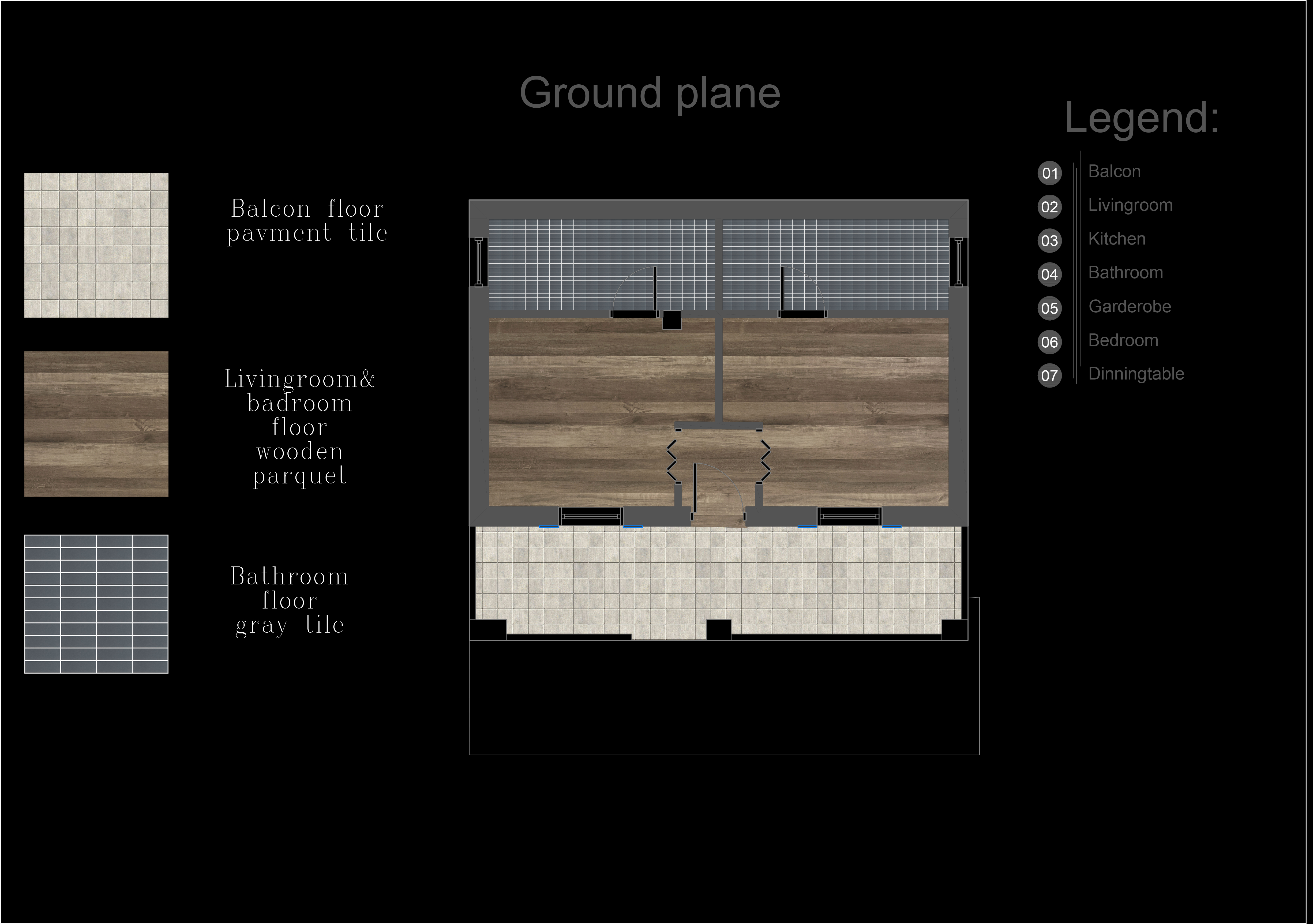 The house is a terraced house on two floors. The map we have conceived is simple. We have already identified the coverings of the 2 bathrooms. Attached are both photos of the bathrooms and the floor that is all dark grey (please see photos).