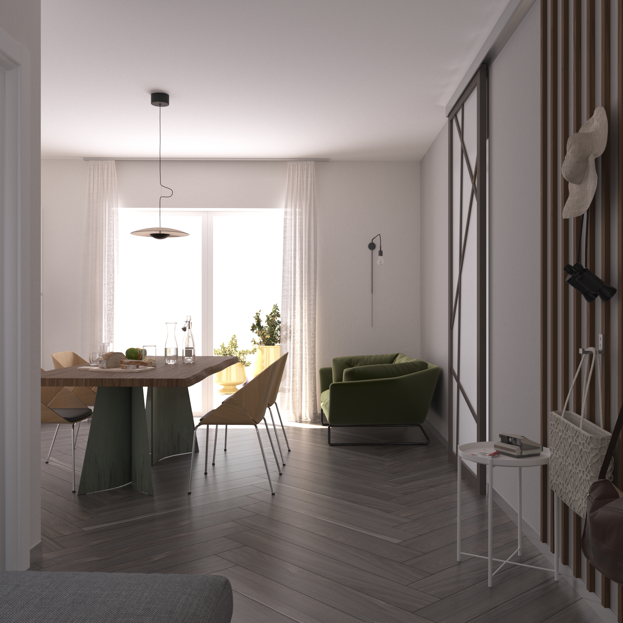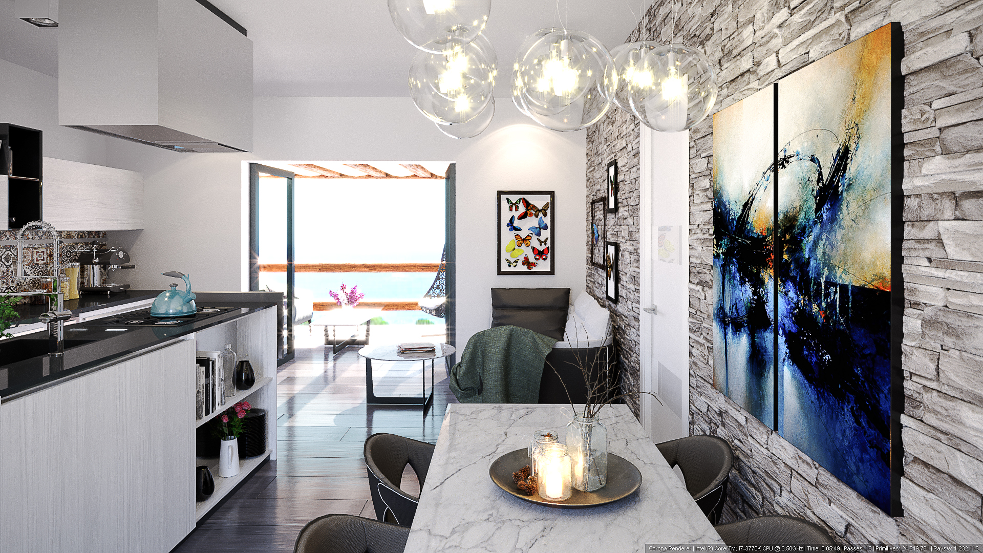 a) the priority is the design of the kitchen/living room which is the main area of the house;