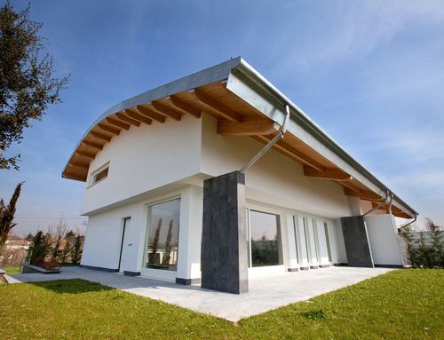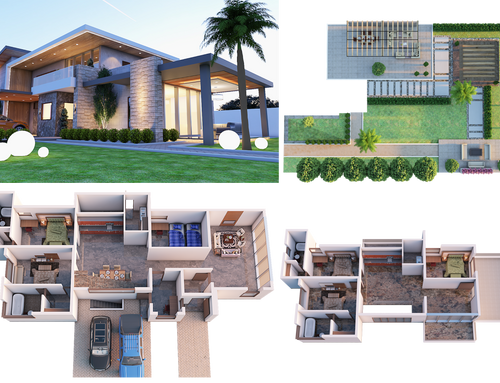 Ciao a tutti, voglio costruire casa su 1 piano di circa 190-200 metri quadrati (come pianta allegata) con 2 posti auto anche aperti come da foto, il mio terreno è un rettangolo 20x50 metri totale 1.000 metri quadrati, mi piace il moderno ma non troppo freddo, ma anche una soluzione moderna con il tetto in legno la posso valutare. amo il giardino quindi posizionerei la villa tutta da un lato del terreno-rettangolo lasciando 5 metri da un lato e i restanti 20-25 metri lascerei giardino davanti, con piccolo seminterrato. rivestimento in pietra o travi in legno a vista anche in piano non per forza a falde, le foto e la pianta allegata sono quelle che mi ha realizzato il mio architetto di famiglia, diciamo che non mi dispiacciono, ma sopratutto la parte del soggiorno che si affaccia sul giardino li vorrei migliorare un pò le forme, perchè quel balcone a sbalzo non mi piace molto, mi piace tanto la tegola canadese, ma il mio architetto non me la vuole mettere il quale dice che non va con il moderno, ma io penso che se abbinata bene invece ci sta e come, Lavorare sulla mia attuale pianta allegata è meglio poichè e realizzata su misura in base le mie esigenze, a meno che qualcuno di voi non ha qualche nuova mega idea di pianta da propormi, amo le case basse e non a 2 piani, anche se penso che con un terreno così lungo potrei fare 2 piccole ville su 2 piani visto il lotto grande che posseggo. faccio notare che è obbligatorio lasciare 5 metri su tutti i lati dal limite, mentre con lo sbalzo si può anche andare oltre i 5 metri. Guardando la pianta dove c'è il soggiorno, la parte che si affaccia sul giardino, abbiamo un'altezza di 5 metri esterni e 4,70 metri interni, mi piace la doppia altezza per dare più slancio alla villa e magari poi realizzare se necessario un bel soppalco. Ho bisogno di; 1 camera matrimoniale con bagno in camera e cabina armadio, 2 camerette grandi per bambini, 1 piccolo ufficio con entrata indipendente,1 lavanderia, 1 cucina grande e 1 cucina piccola per fare le fritture con brutti odori.1 lavanderia e 1 dispensa. BUON LAVORO