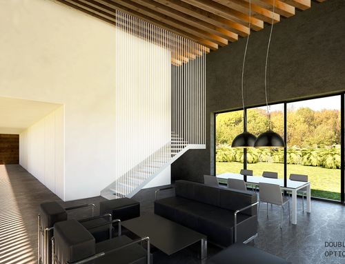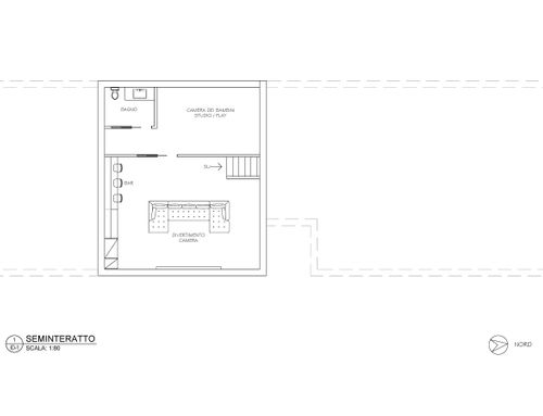 As regarding the living area facing the garden, we can use 5 m height for the external part a 4,70 m for the internal part. I’d like to use a double height here maybe with a mezzanine.