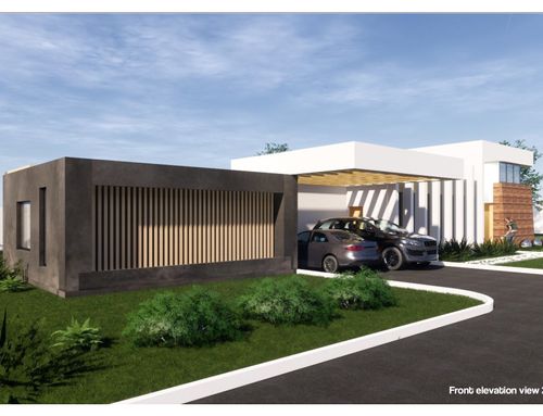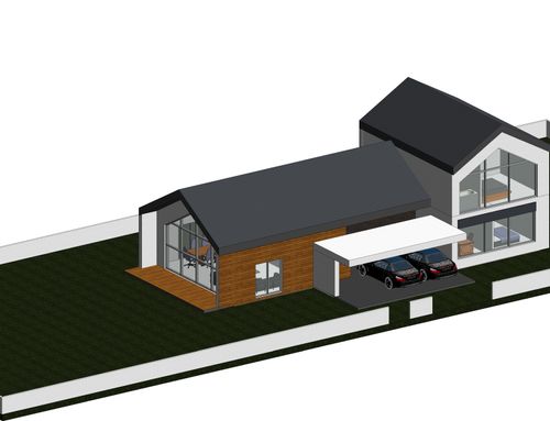 Soy dueño de una parcela de tierra de 1.000 m2 (20x50 m) y me gustaría construir una nueva casa de aproximadamente 190-200 m2 (ver plano adjunto para referencia) con 2 plazas de aparcamiento (ver fotos de referencia). Me gusta el diseño moderno si no es muy frío.