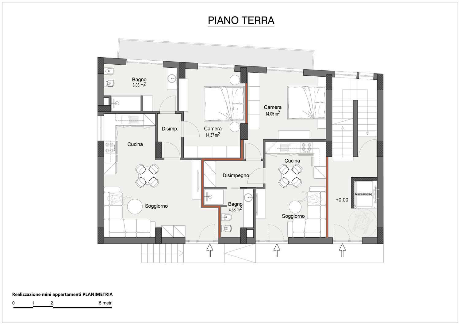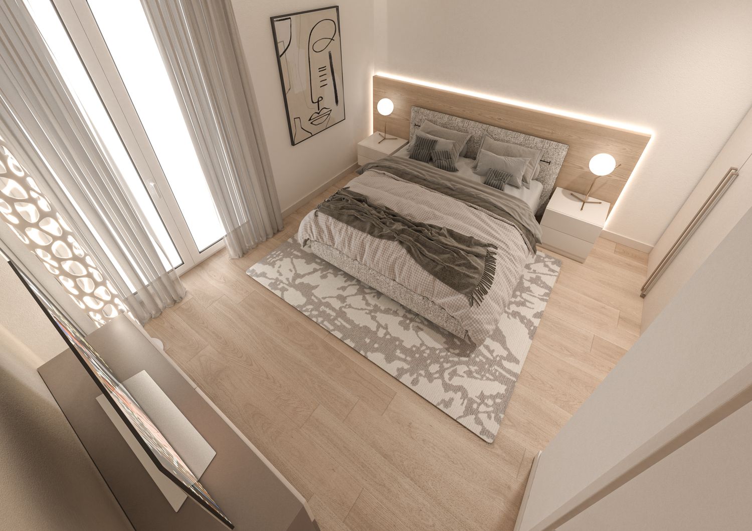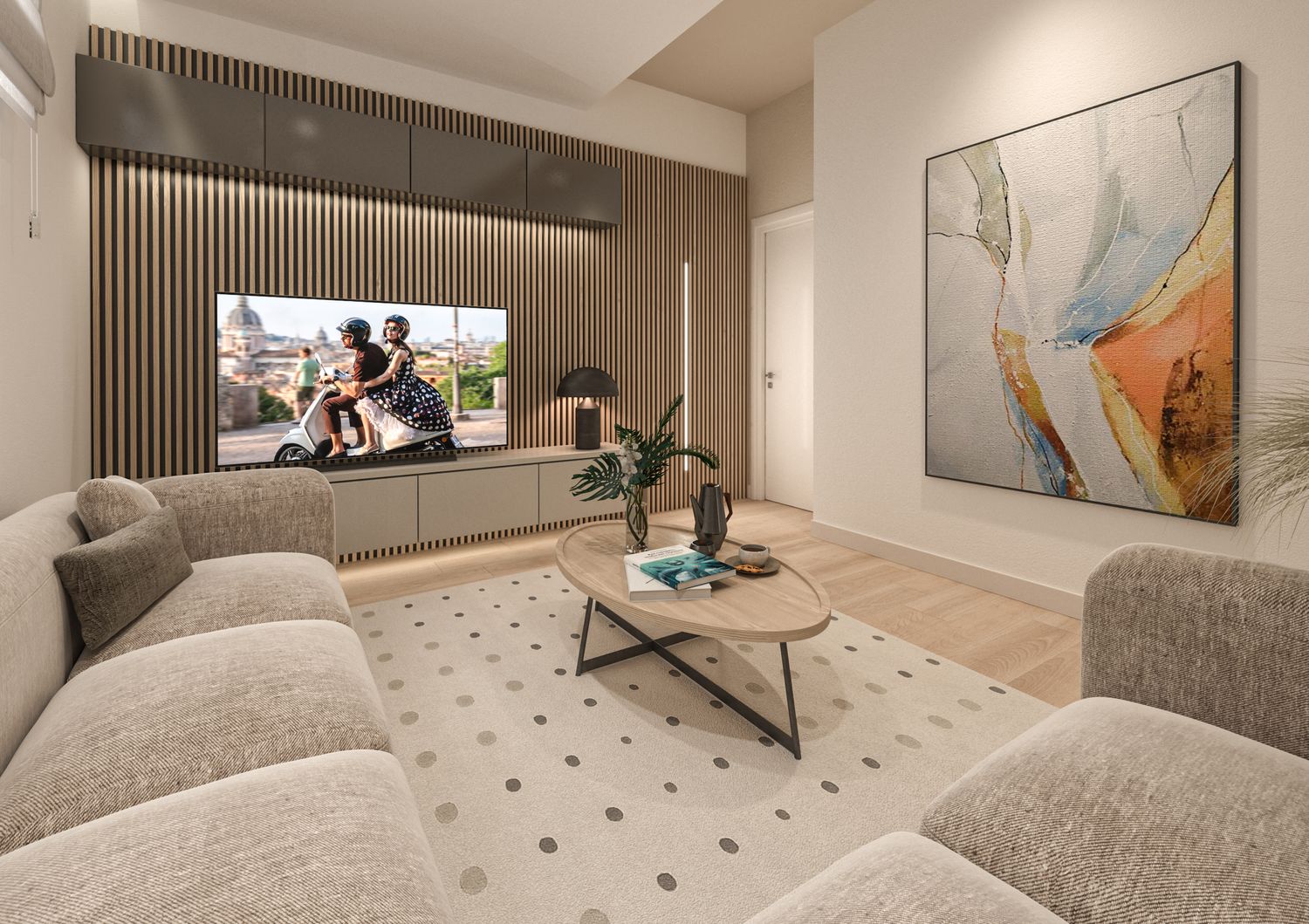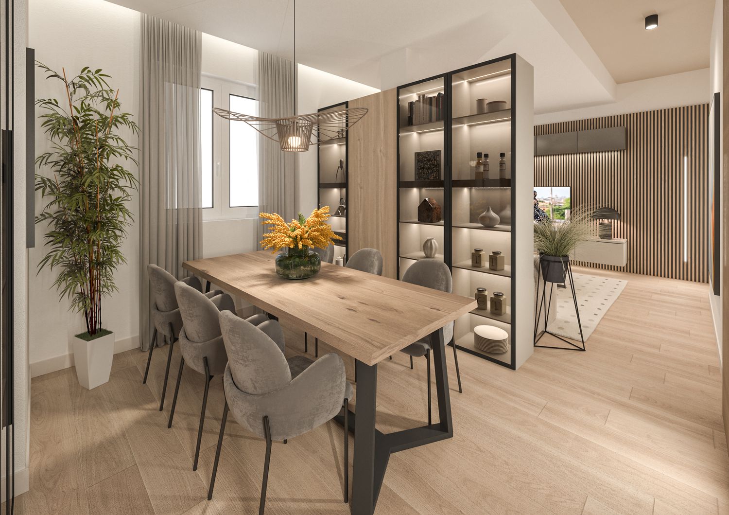 Il progetto mira alla riconversione di una porzione di bifamiliare in sei mini-appartamenti indipendenti e alla riorganizzazione del seminterrato. L'obiettivo primario è massimizzare la funzionalità e il comfort abitativo, con un'attenzione scrupolosa all'ottimizzazione dei costi e all'efficienza impiantistica. Per superare i requisiti standard, sono state implementate due soluzioni ad alto valore aggiunto: inserimento di un mini-ascensore a servizio di tutti i livelli per l'abbattimento completo delle barriere architettoniche e l'applicazione di un isolamento acustico performante nelle pareti divisorie, garantendo privacy e serenità in ogni unità. Il design interno, come mostrato nei render HD dell'appartamento tipo al Piano Primo, è contemporaneo e accogliente, basato su linee pulite, colori chiari e materiali durevoli. Il gres porcellanato effetto legno unisce calore e praticità, mentre l'uso strategico di pannelli Akupanel migliora l'acustica interna. Il risultato è la creazione di sei unità abitative moderne e funzionali, che fondono design ottimizzato, accessibilità verticale e comfort acustico superiore, nel pieno rispetto delle normative e del budget.