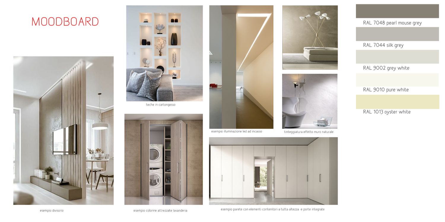 As per your requests, six mini-apartments have been created, optimizing the available space and making it usable. The apartments consist of an entrance hall with a flush-fitting wardrobe, a living area with kitchen, dining area, and a TV stand; a storage room and/or laundry room; a bedroom and bathroom. Furthermore, given the larger space on the first floor, one apartment has a second bedroom that can be opened onto the living room thanks to a large sliding door, and a second bathroom. The style is linear, with simple, clean-lined furnishings that blend seamlessly into the spaces.