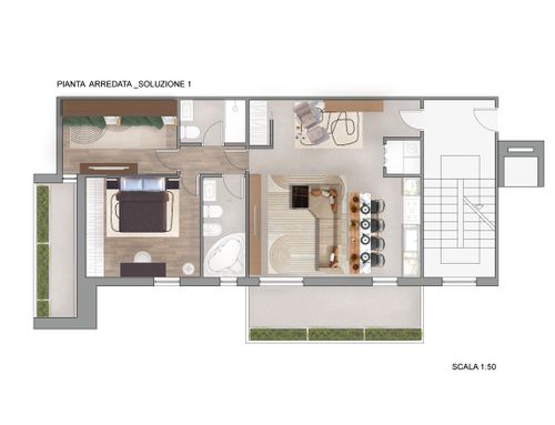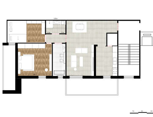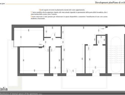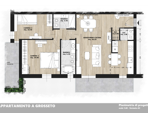 My husband and I have just purchased (just a preliminary) a house in Grosseto due to moving from another city. We are already in contact with the person who sold us the house to do some low-impact renovation (recovering parquet in the sleeping area, changing the floors in the living area, renovating the bathrooms) what we are interested in is understanding how to organize the spaces. For the kitchen, given the small size, perhaps we prefer to leave it separate from the living room, also for a question of budget, we do not want to lose the closet to make a small laundry space. The living area is comfortable with a small wardrobe, TV with a dedicated wall and sofa in front. For the bathrooms, I would like to have a bathroom with a window with a bathtub, cabinet with a countertop sink, bidet and toilet. My husband would like a hydromassage but I like a freestanding one, I don't know if it can fit in the budget. The bathroom without a window has a large shower, sink, bidet and toilet. The double bedroom has suspended bedside tables and a large wardrobe, if possible, also a small dresser. For now, we would like to have the smallest bedroom free but if necessary it can accommodate two people and therefore also a wardrobe. In this small room we want a TV station in the double bedroom we don't want it
