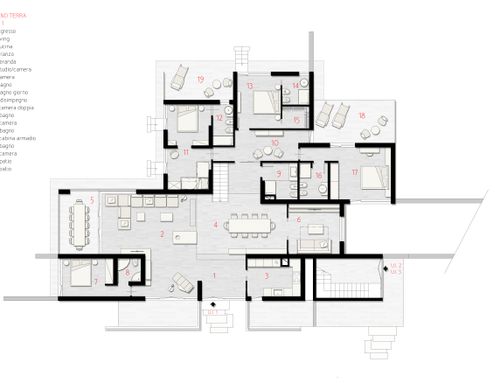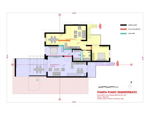 - Preservare il piano terra per avere un unico appartamento grande, con la possibilità di rivedere gli spazi, in particolare l'area della camere da letto e bagni