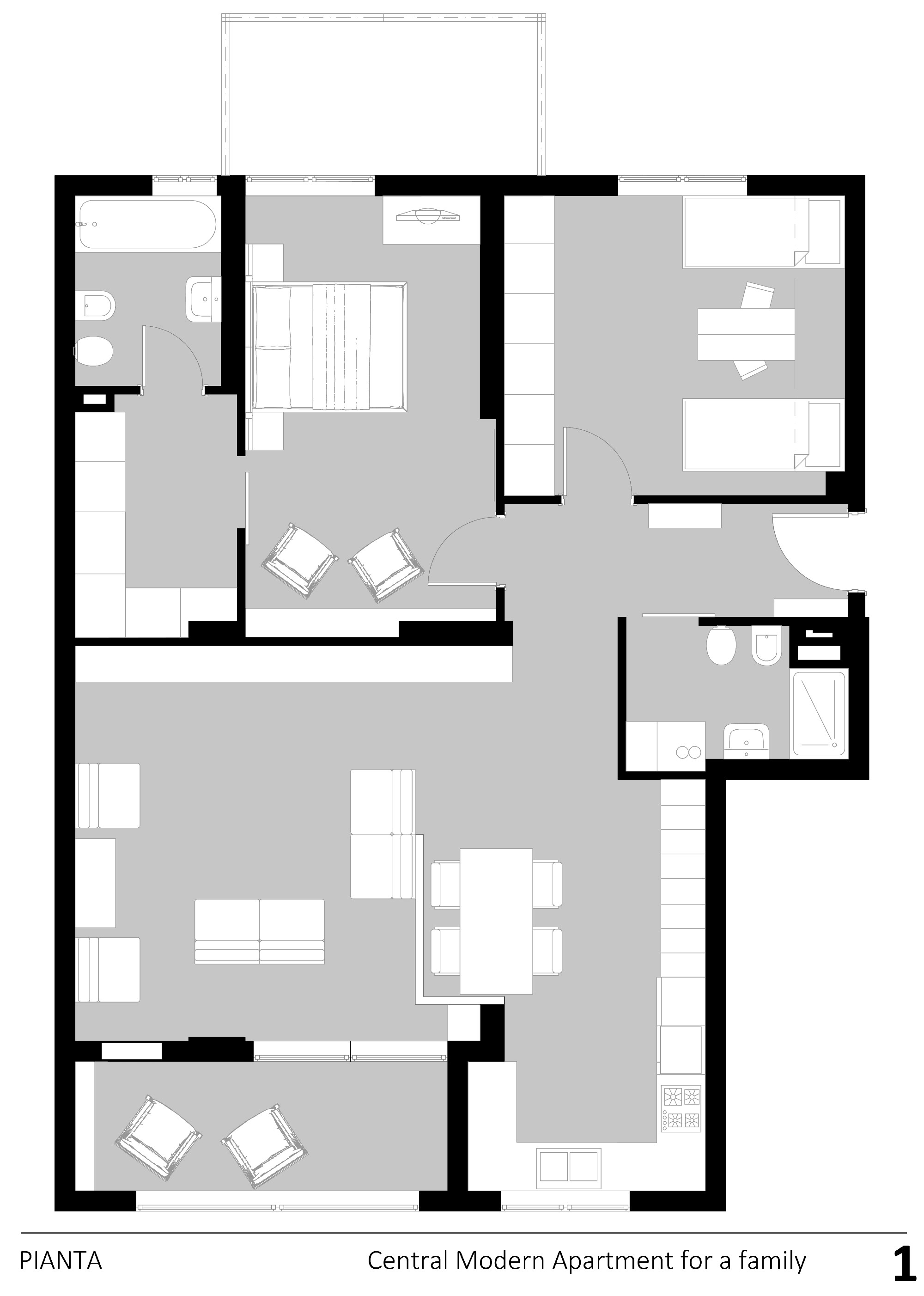 La casa ha una superfice di 125 m2 includendo anche i balconi. In termini di stanze la casa e composta: