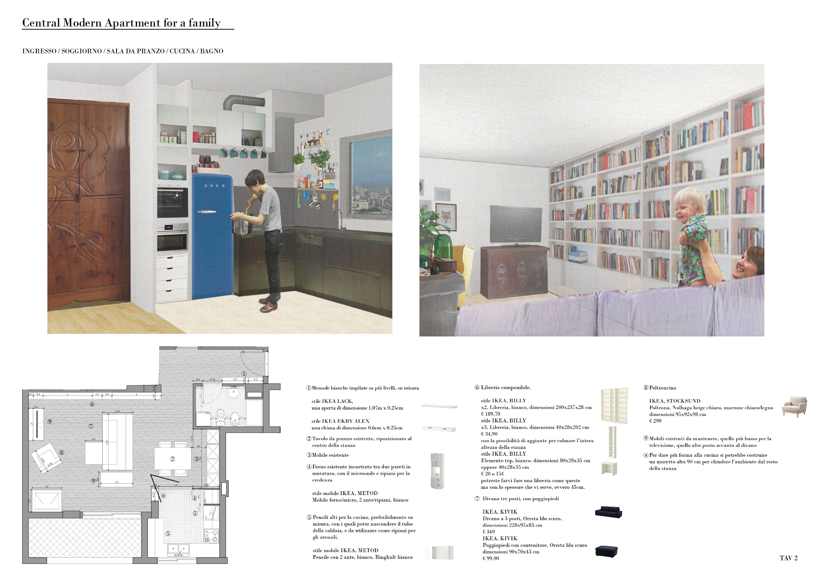 - Aggiungere le librerie ( noi pensiamo che la parete di fronte alla porta del balcone sia la soluzione più fattibile ma siamo aperti alle vostre idee). La libreria deve essere larga (45 cm) e la parte di sotto deve essere progettata come armadio ma non sembrare tale per non dare al salone un'area da stanza da letto;