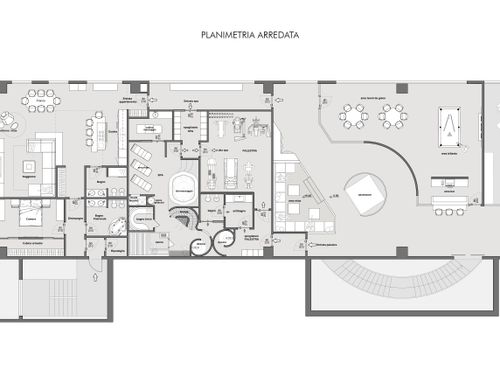 the idea is that in the hall we would like to create a "games" area with billiards, game tables and a relaz area, in the other part we would like to create a small gym and a personal apartment with a small spa, a kitchen, a bedroom, a bathroom and a sitting area, possibly making spacious rooms.