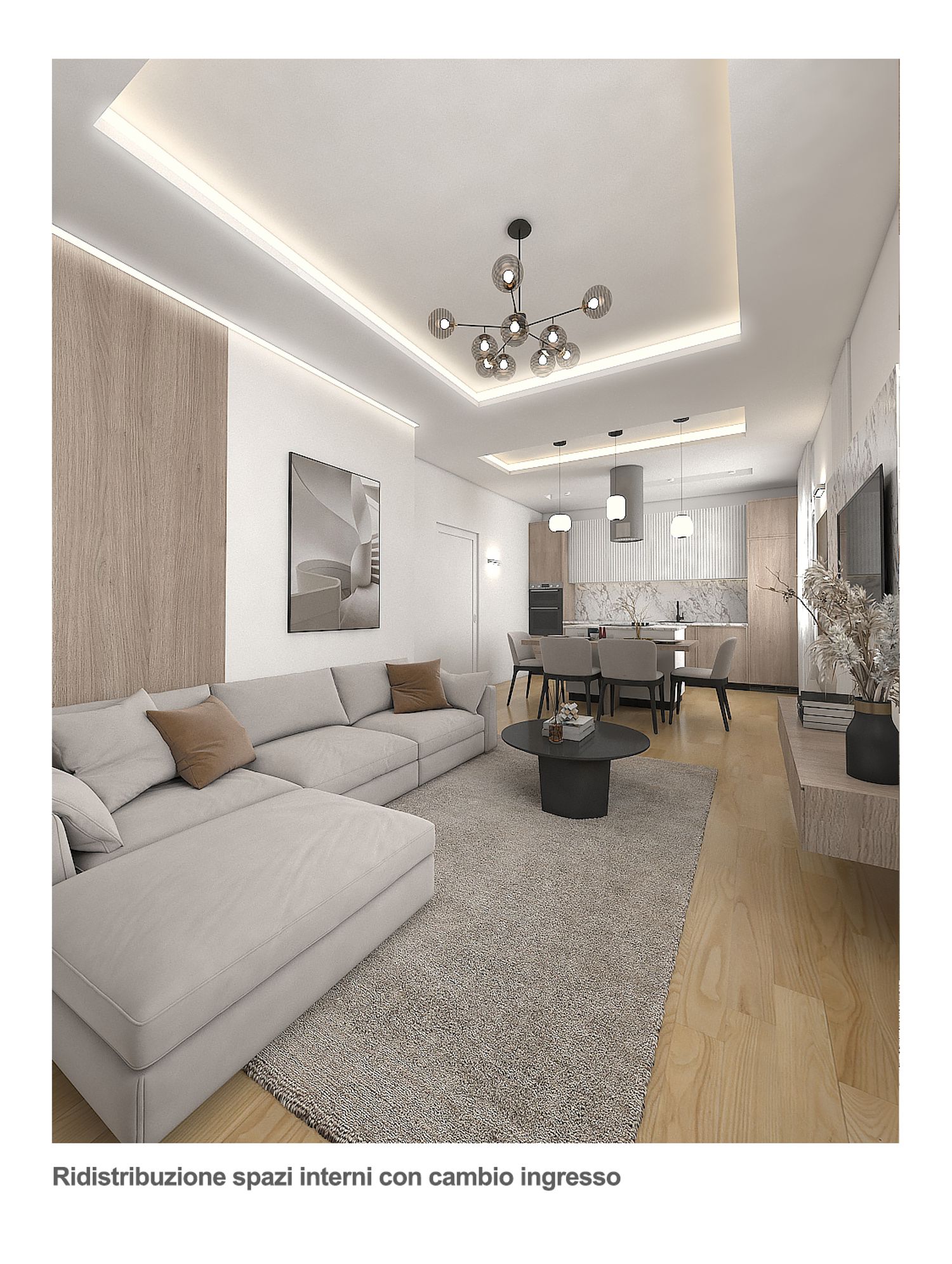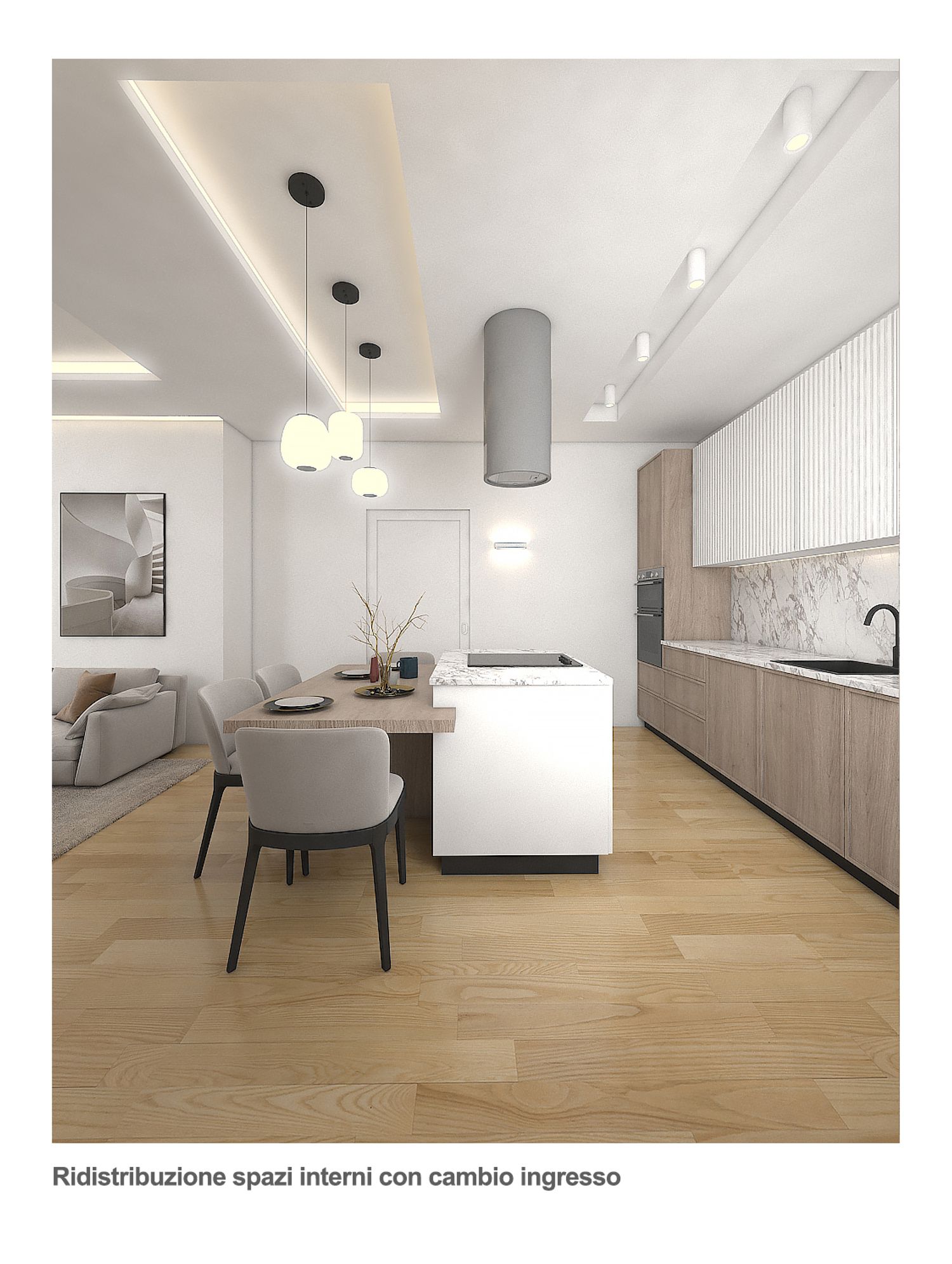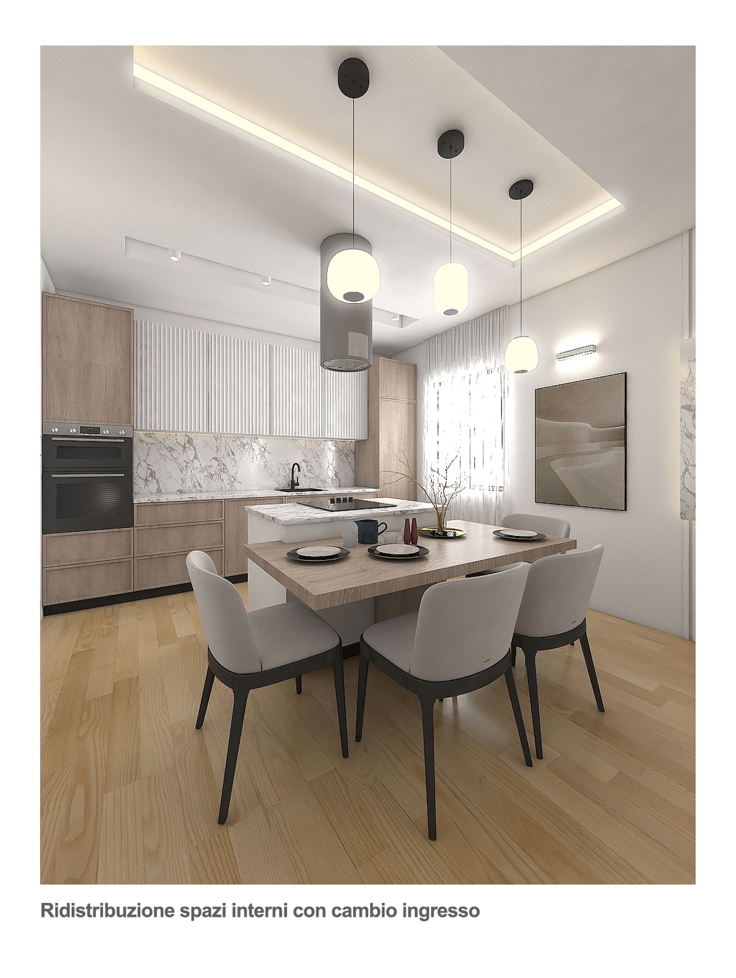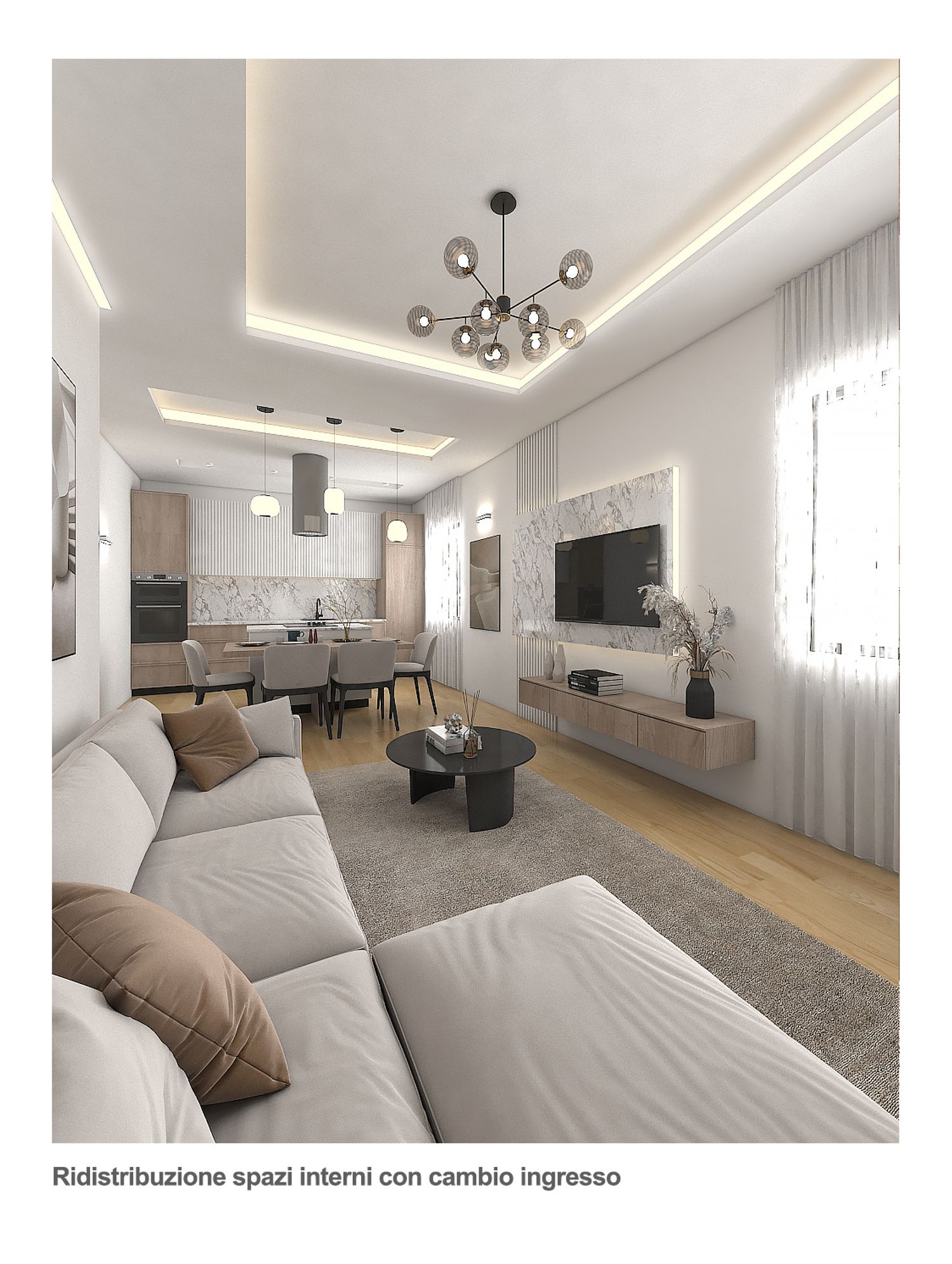 Upon entering the house, you will be greeted by an open, bright environment with a combination of warm and natural colors. The ceiling design and lighting, while emphasizing the living area and kitchen, create a unified and relaxing environment for those present in the house.