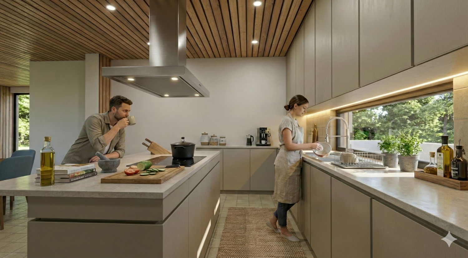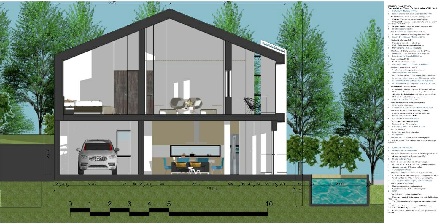Dado el contexto agrícola, excluyendo las terrazas, la cubierta del edificio será a dos aguas. El concepto moderno y minimalista se integra de manera armoniosa en el paisaje agrícola Patrimonio UNESCO, utilizando también materiales y acabados locales como soluciones de integración.